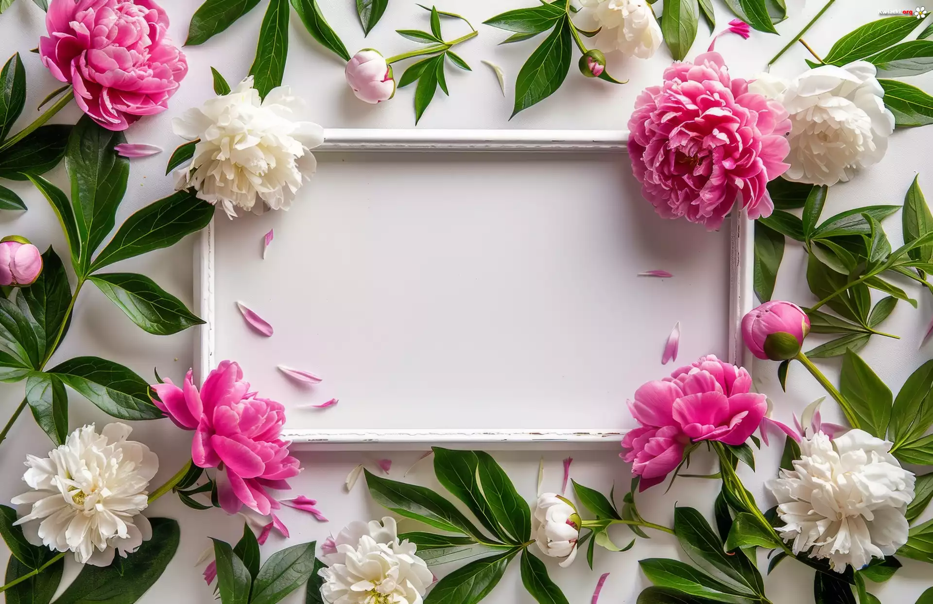 Białe, Różowe, Piwonie, Ramka - Zdjęcia