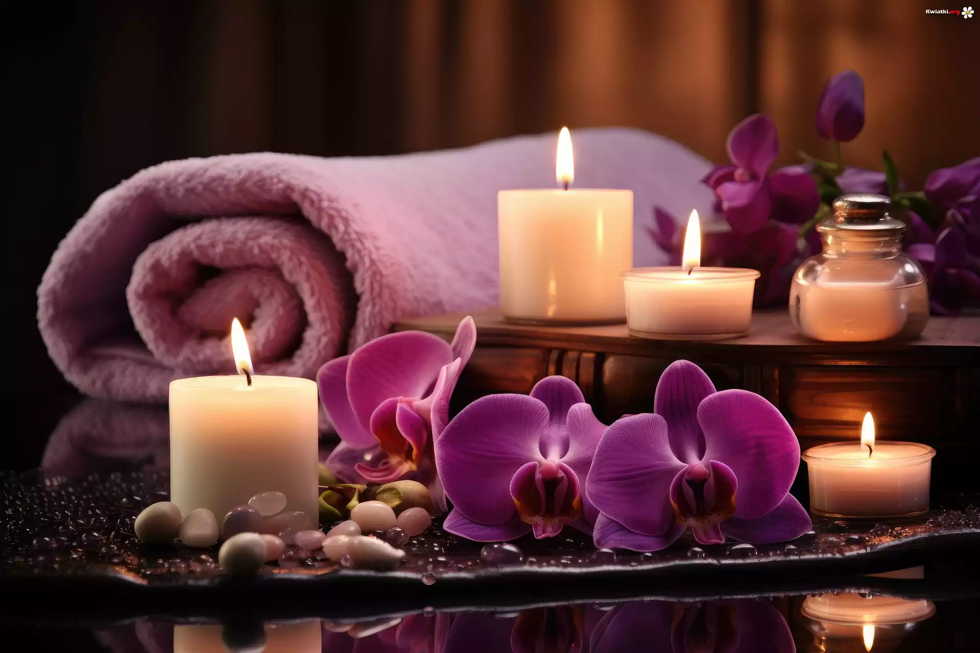 Kwiat Kwiaty, Storczyk, Świece, Ręcznik, Relaks, SPA