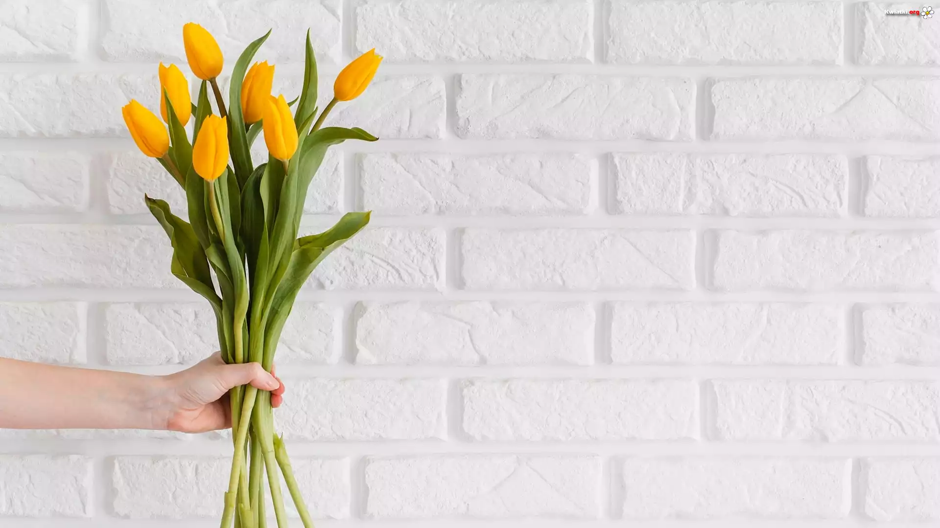 Żółte, Tulipany, Bukiet, Ręka, Ściana - Zdjęcia
