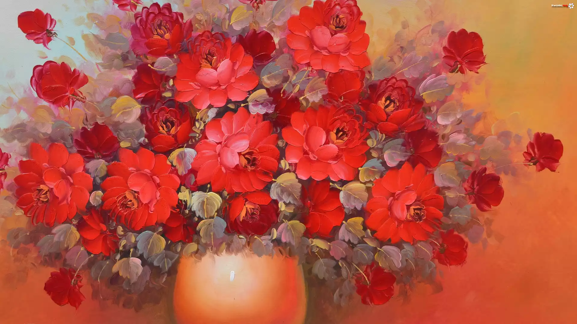 Kwiat Reprodukcja, Obraz, Bukiet, Czerwone, Kwiaty, Wazon
