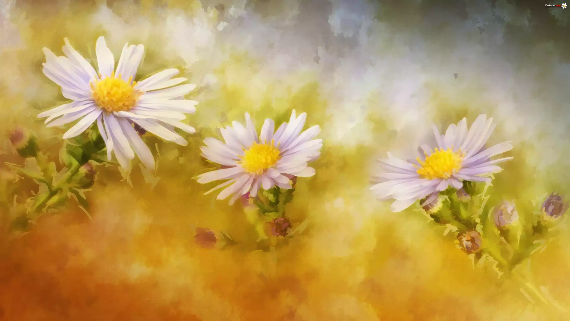 Kwiat Reprodukcja, Obraz, Kwiaty, Astry
