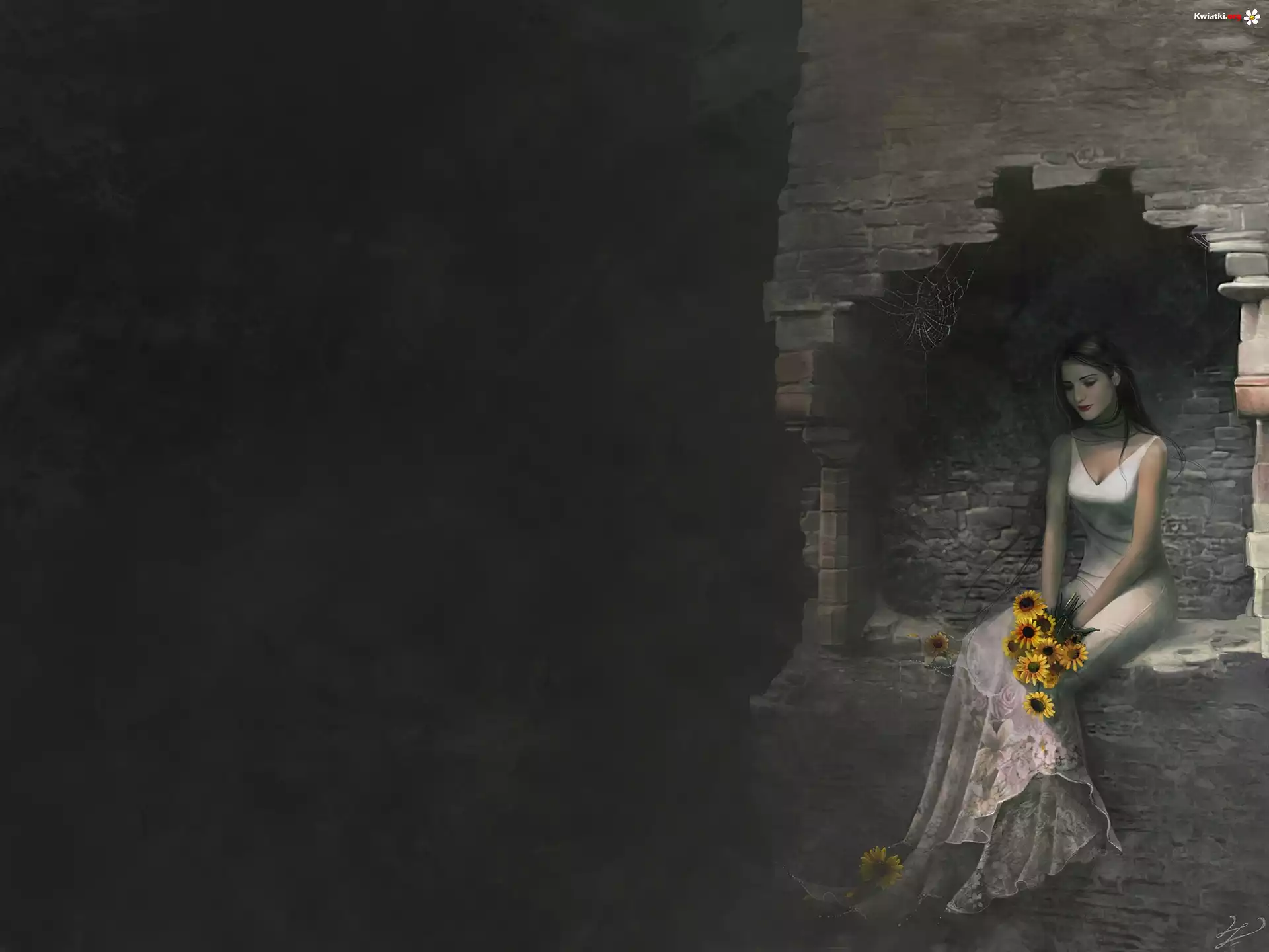 Kwiat Reprodukcje Obrazów, Kobieta, Słoneczniki