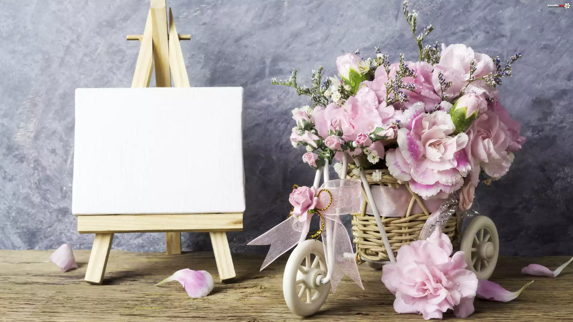 Rowerek, Kwiaty, Goździki Szabo, Tablica - Zdjęcia