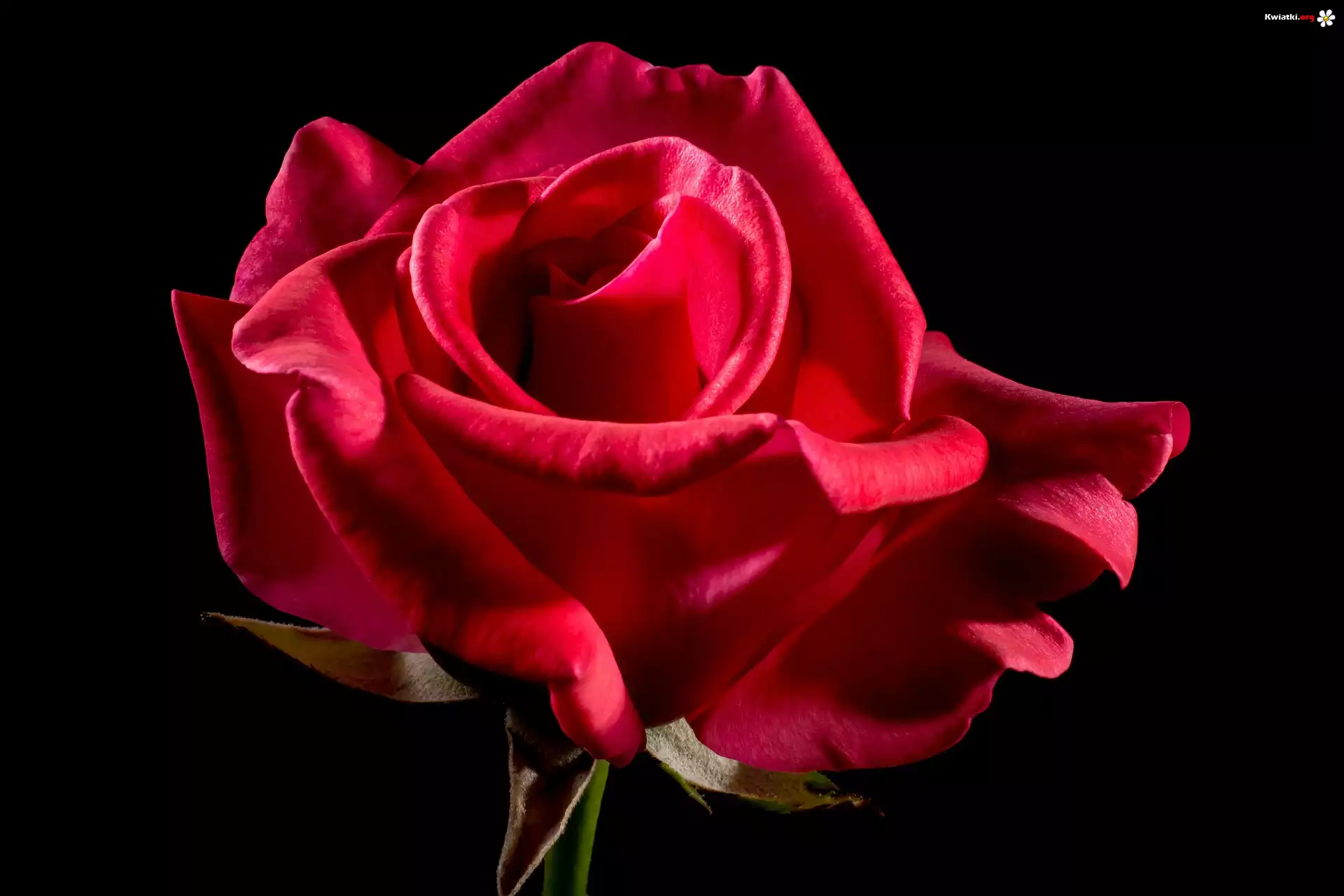 Kwiat, Róża czerwona, Płatki, Łodyga, Listki, Tło czarne - Zdjęcia