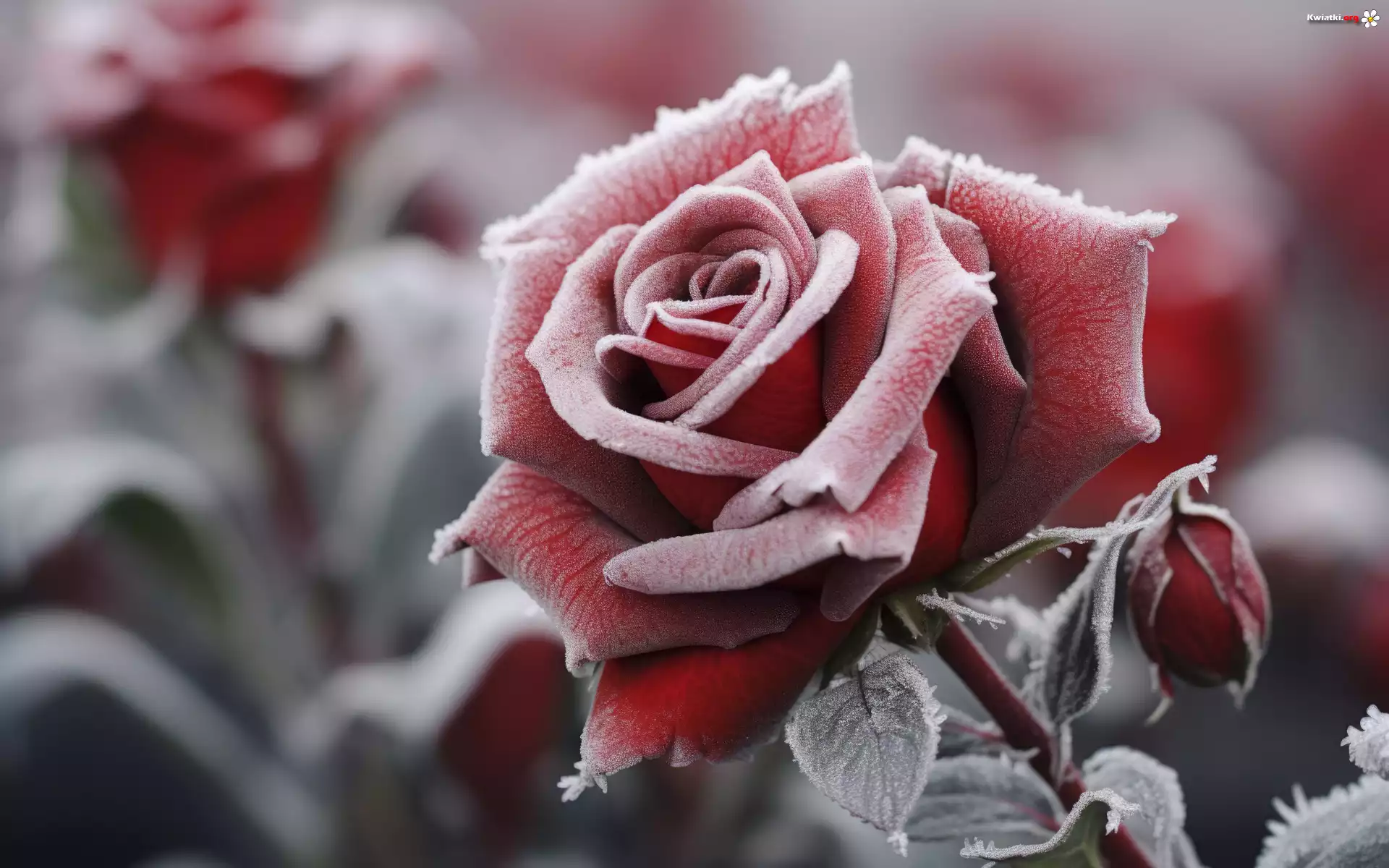 Kwiat, Róża, Czerwona, Oszroniona, Pąk - Zdjęcia
