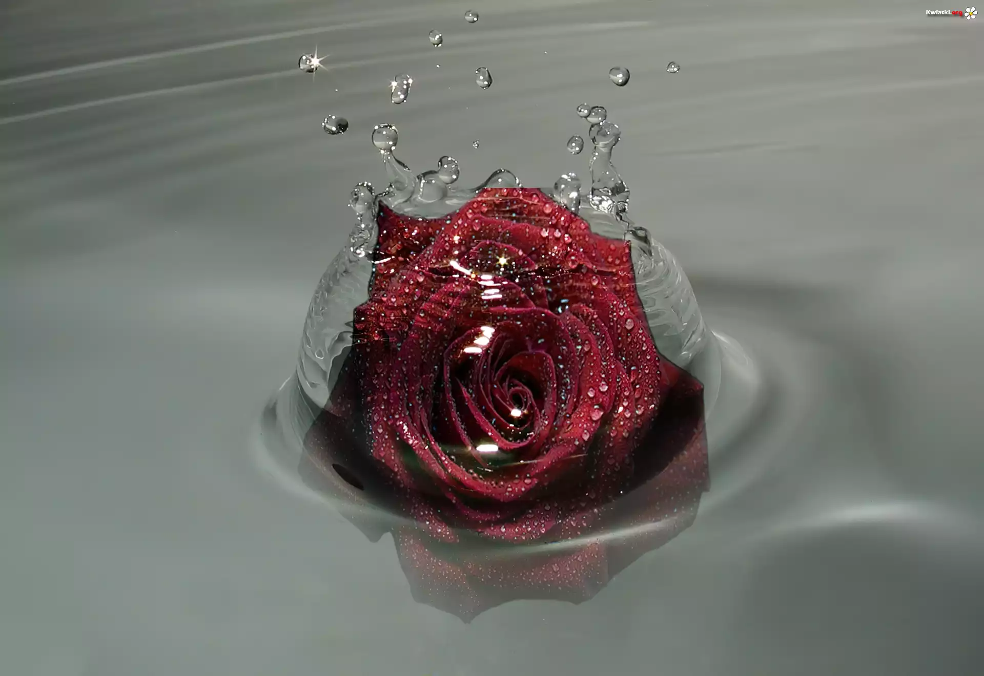 Czerwona, Róża, Woda - Zdjęcia
