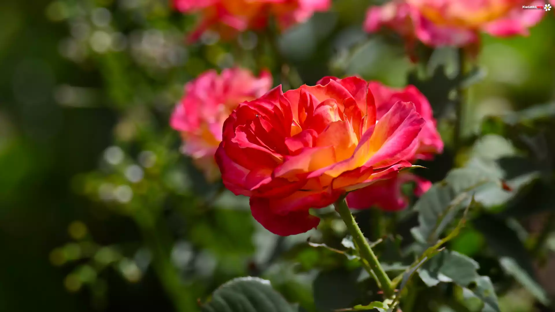 Czerwono-żółta, Rozkwitnięta, Róża - Zdjęcia