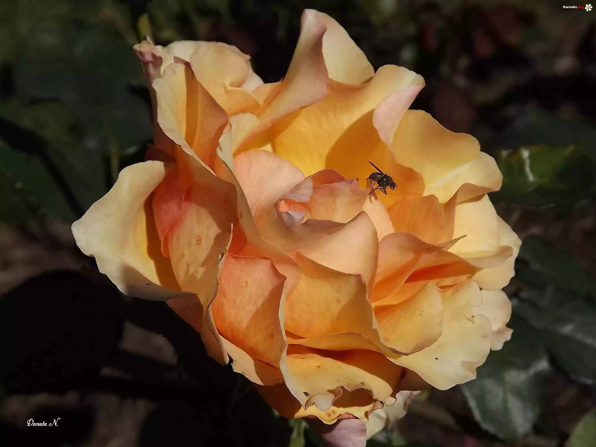 Róża, Jedna, Herbaciana, Mucha, Liście - Zdjęcia