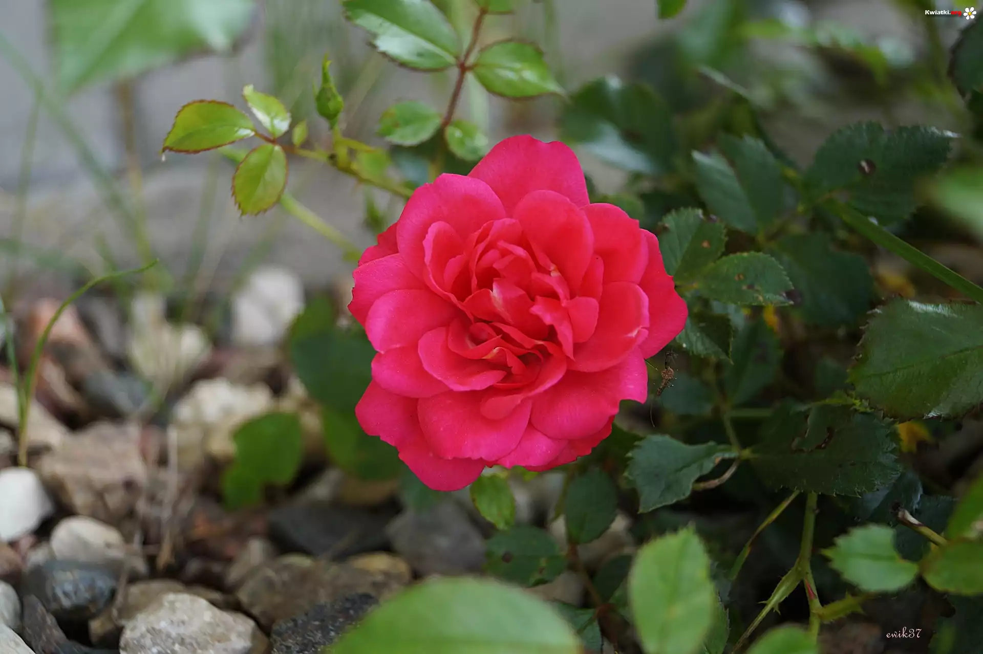 Róża, Ogrodowa, Owad, Kamyki - Zdjęcia