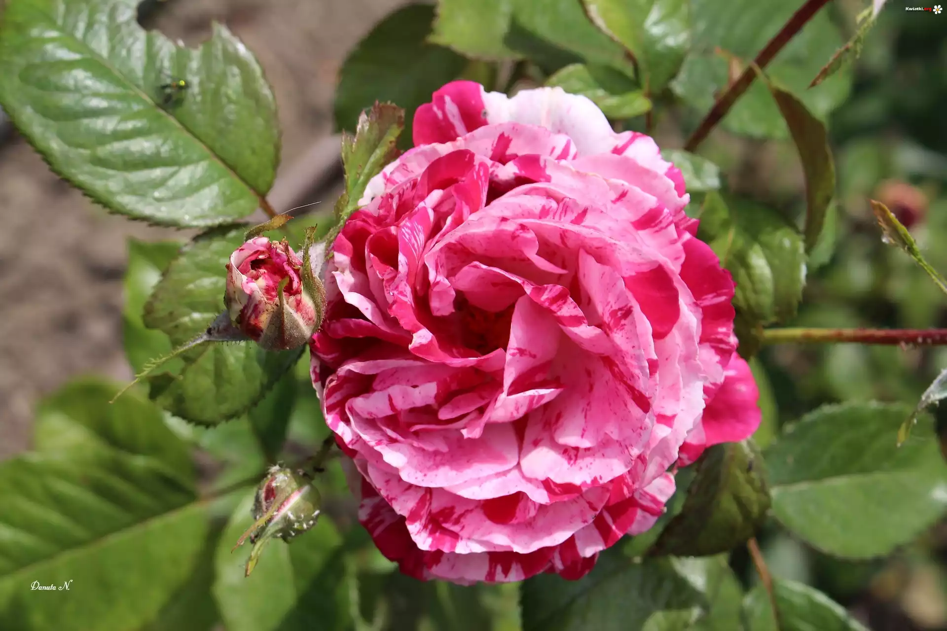 Róża, Dwukolorowa, Pąki, Liście - Zdjęcia
