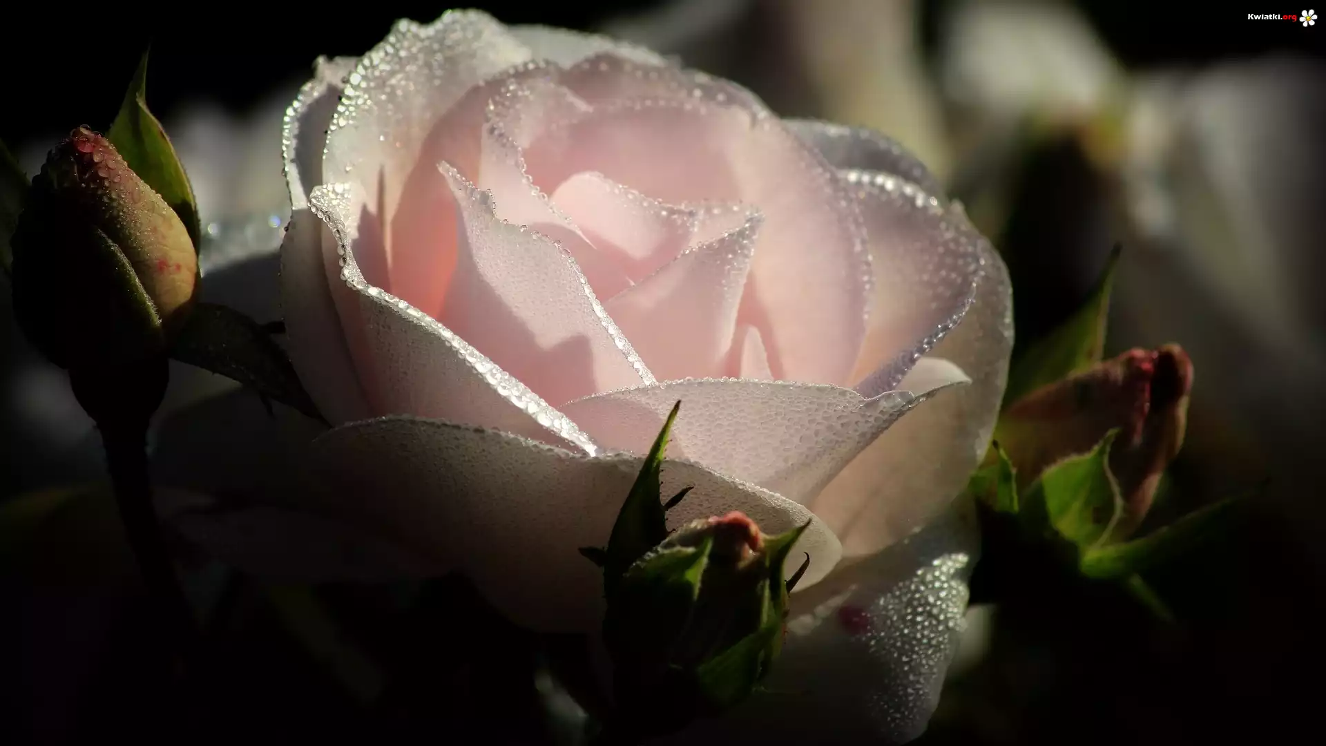 Kwiat Róża, Różowa, Rozwinięta, Krople, Pąki, Światło