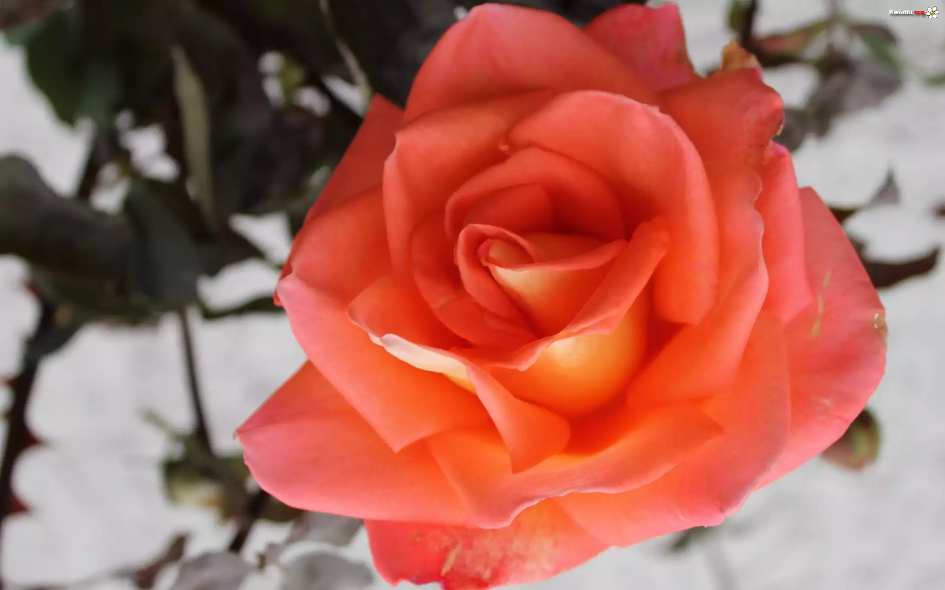 Pomarańczowa, Róża, Śnieg - Zdjęcia