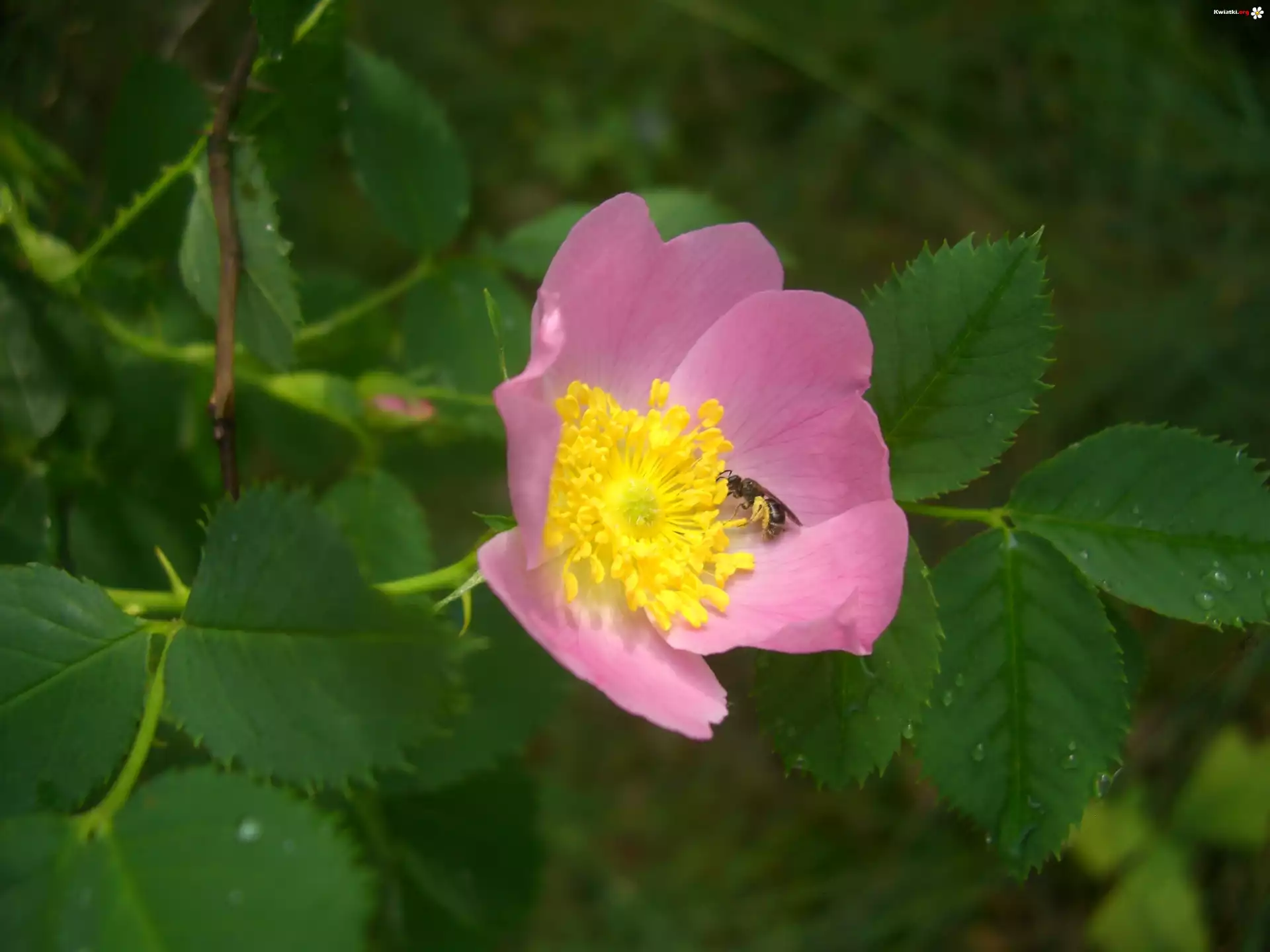 Kwiat Róża, Francuska, Kwiat, Pszczoła, Listki