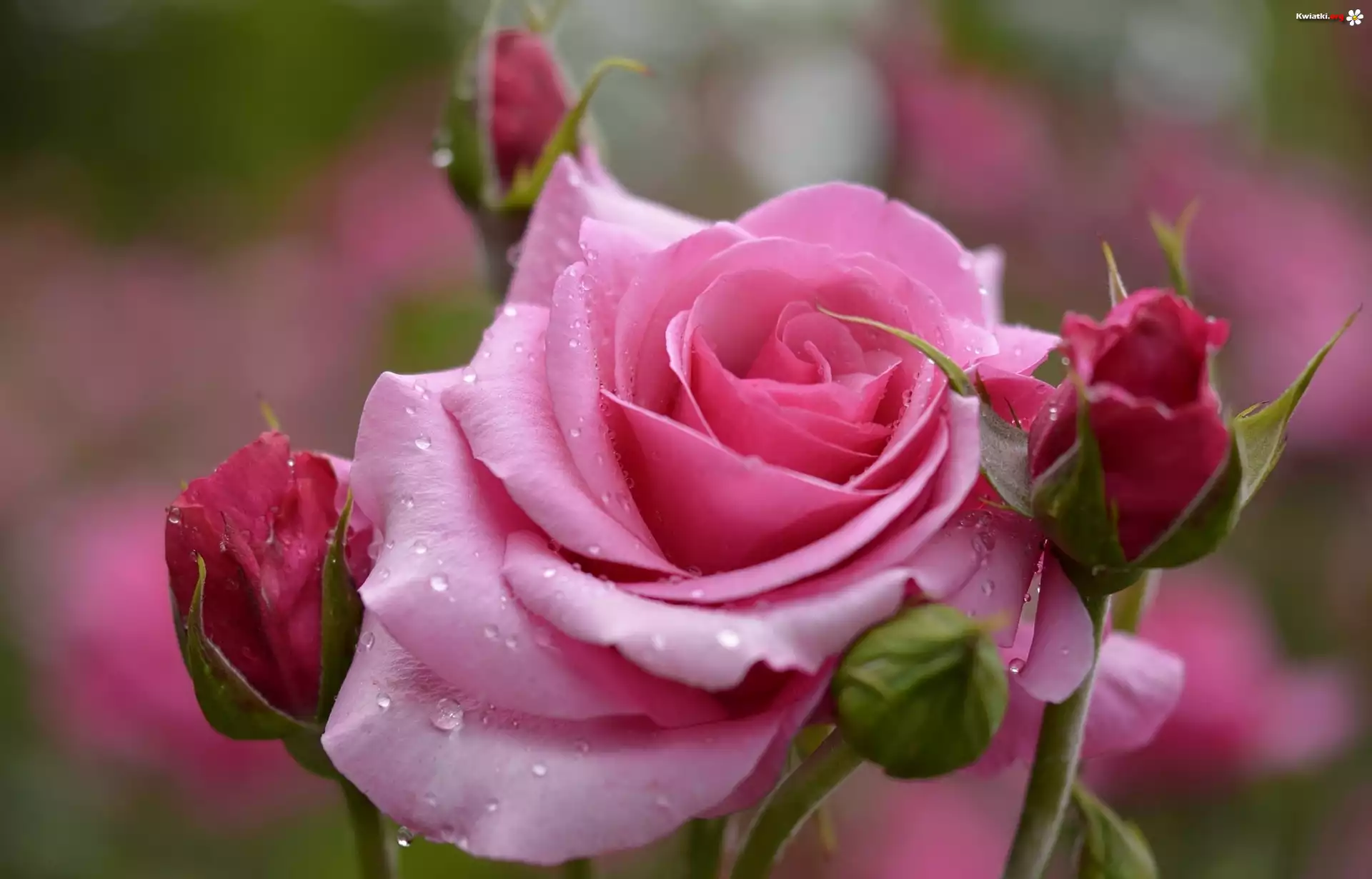 Różowa, Róża, Pąki - Zdjęcia
