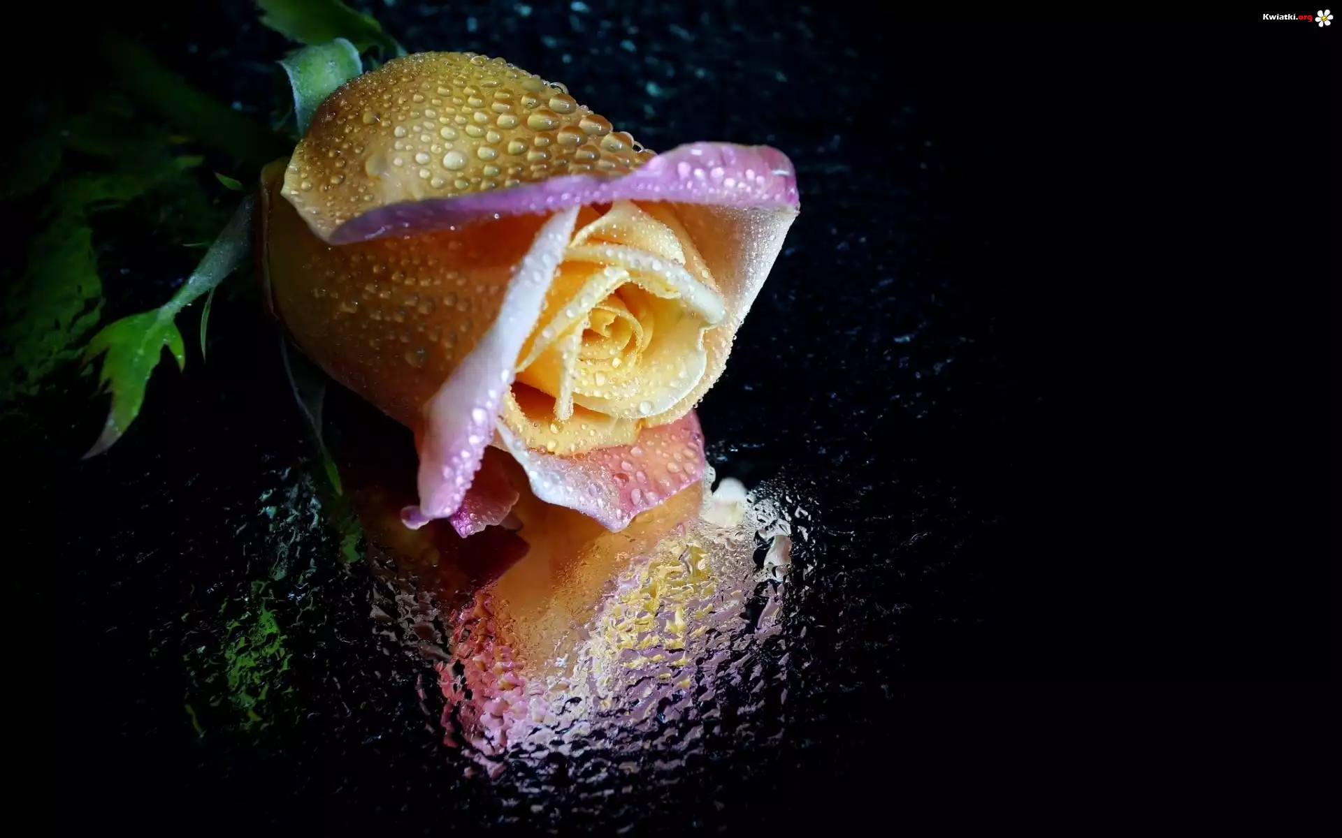 Kwiat Róża, Krople, Wody, Szkło, Odbicie