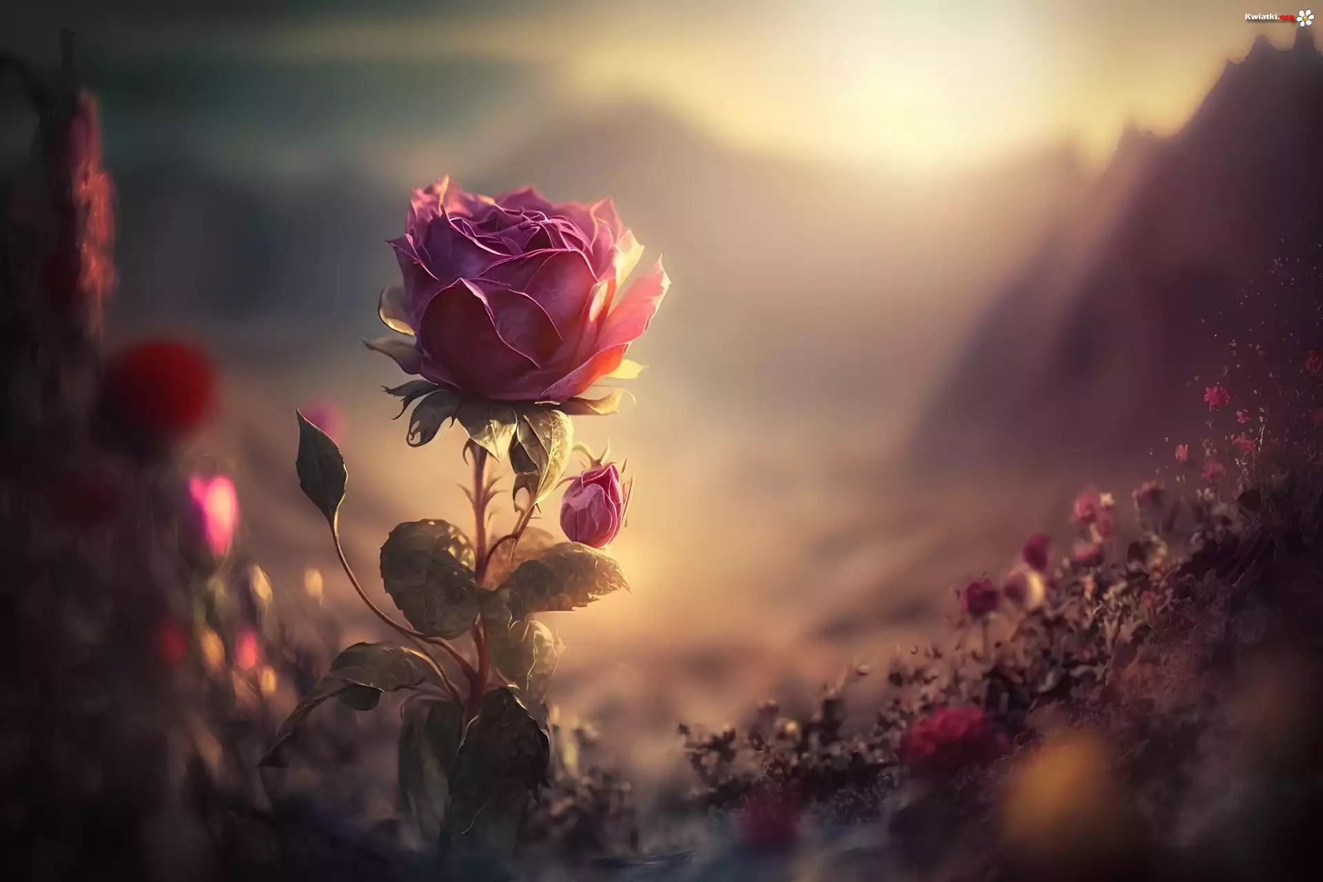 Kwiat Kwiat, Róża, Zachód słońca, Grafika