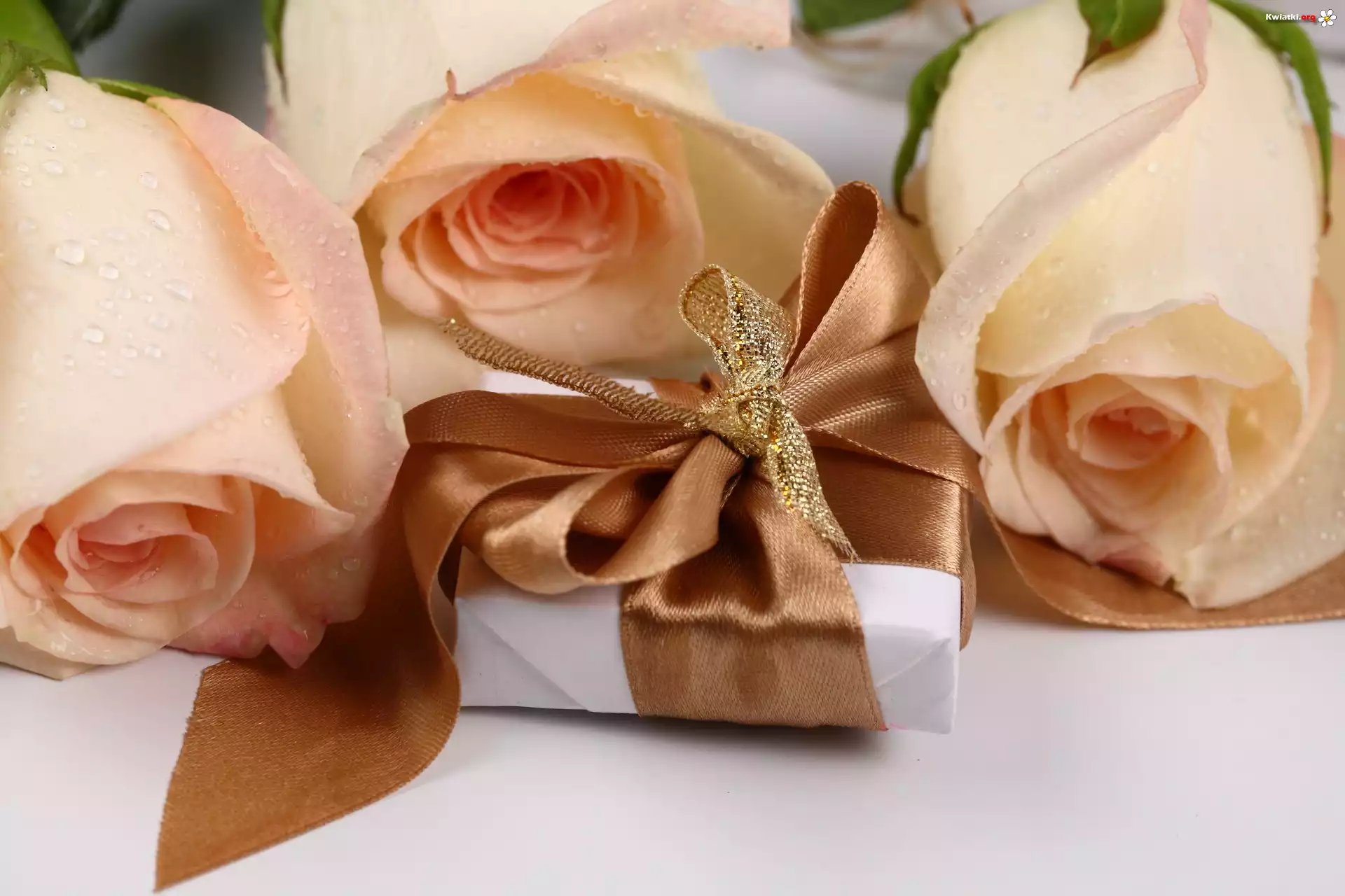 Róze, Prezent, Brązowa, Wstążka - Zdjęcia