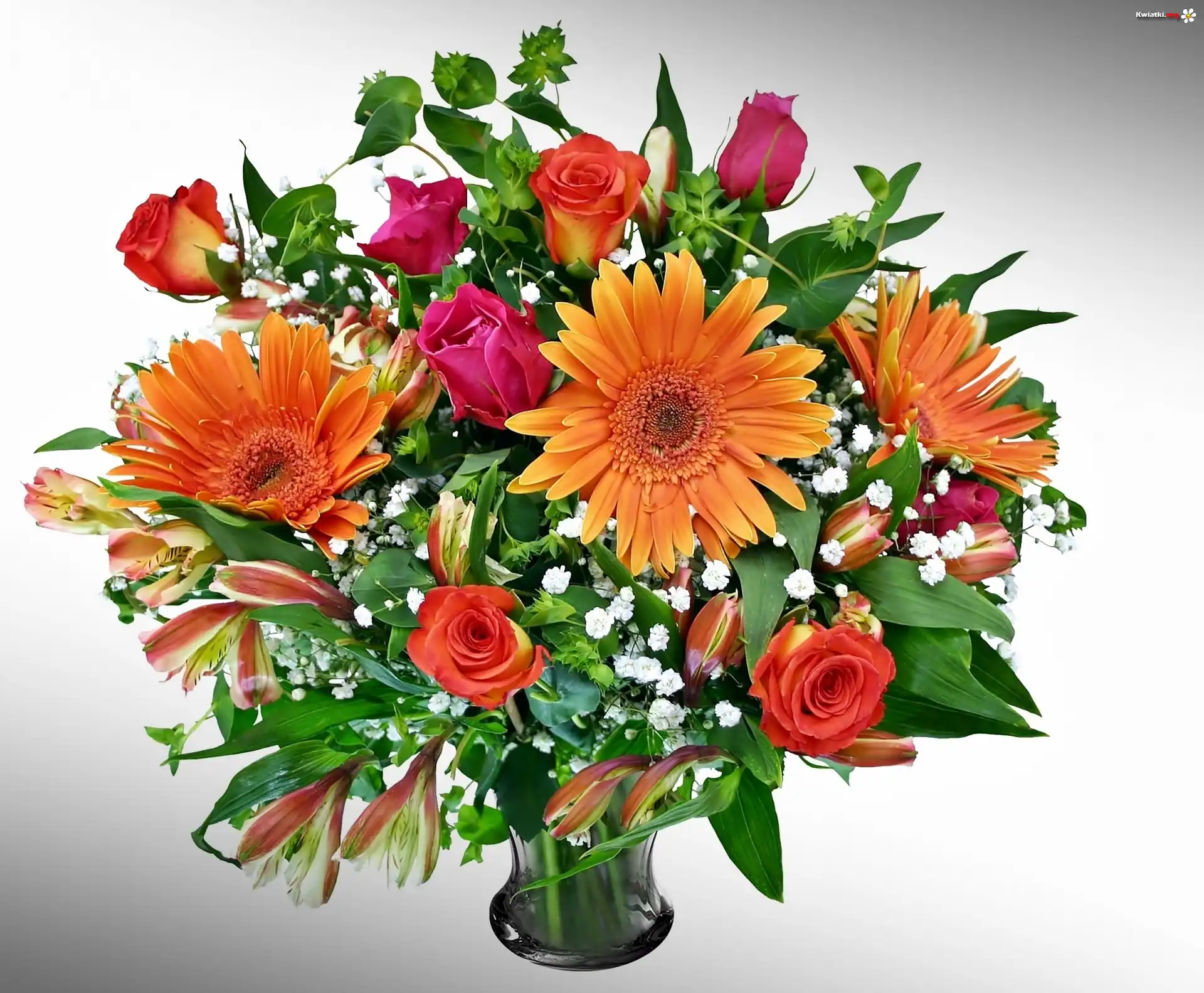 Kwiat Bukiet, Róże, Gerbery