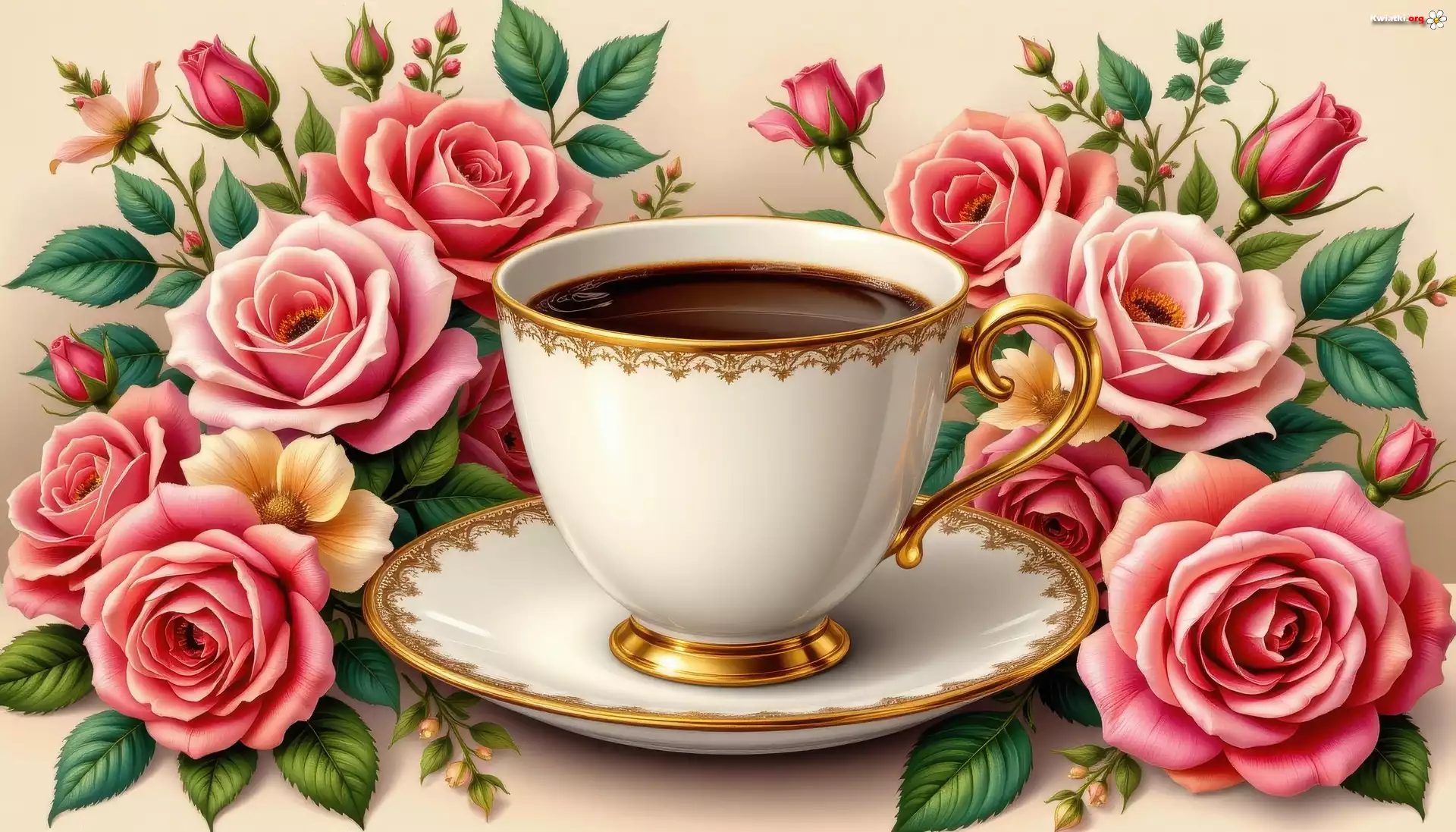 Kwiat Filiżanka, Talerzyk, Kawa, Róże
