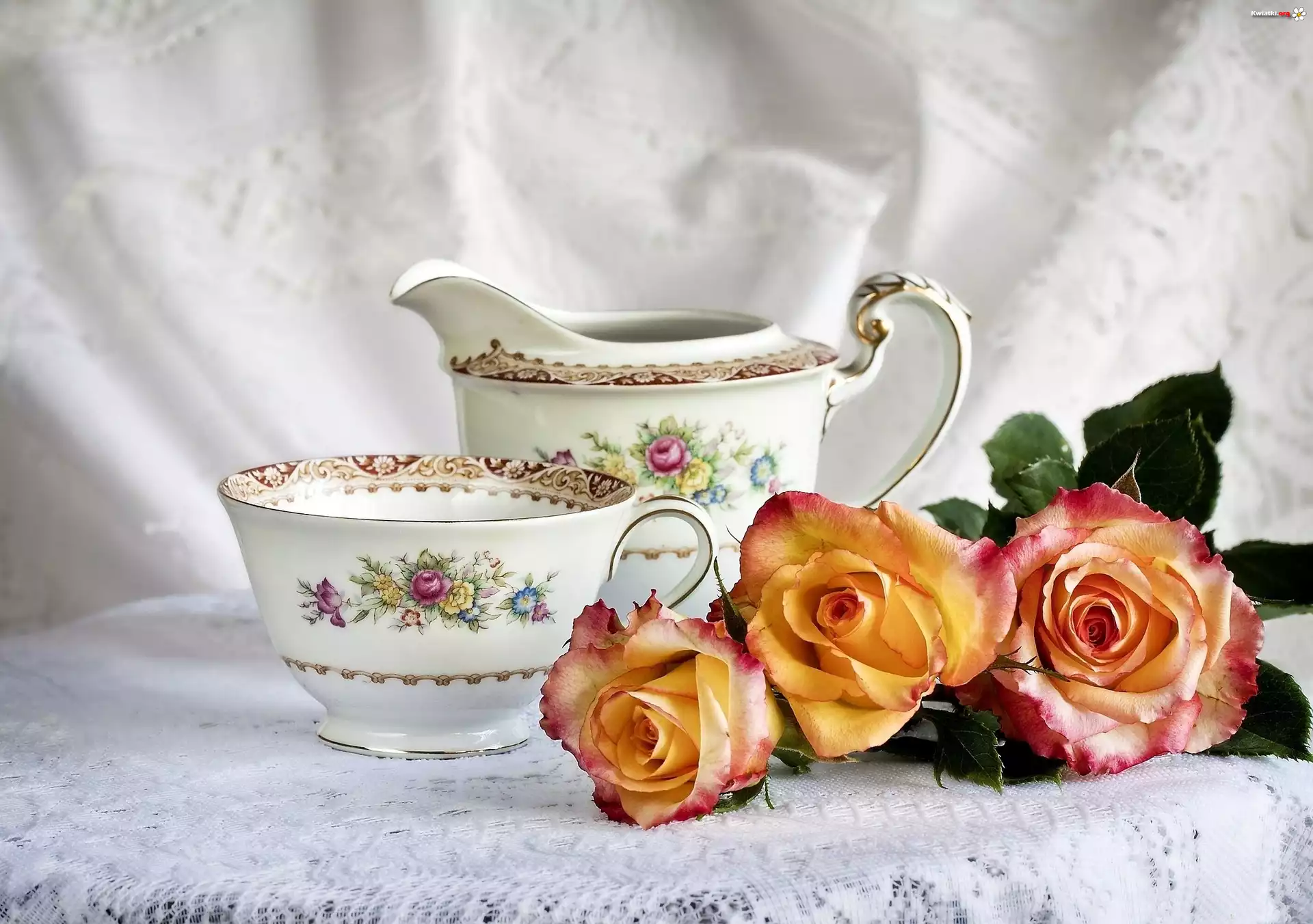 Róże, Porcelanowa, Filiżanka, Dzbanek - Zdjęcia