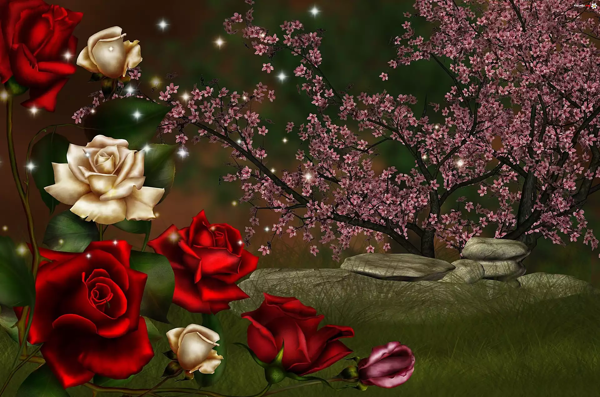 Róże, Ogród, Grafika, 3D - Zdjęcia