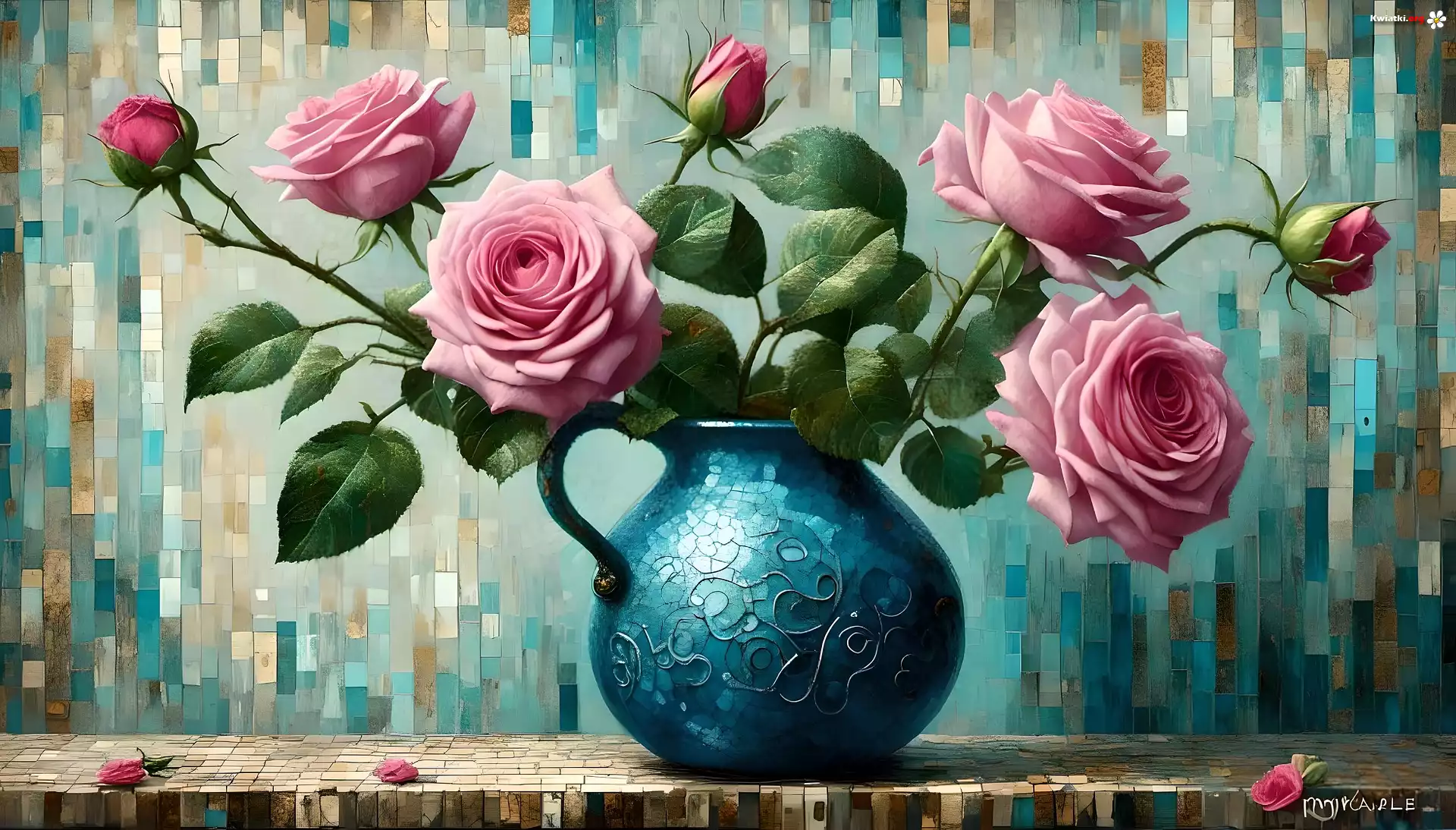 Kwiat Grafika, Dzbanek, Różowe, Róże