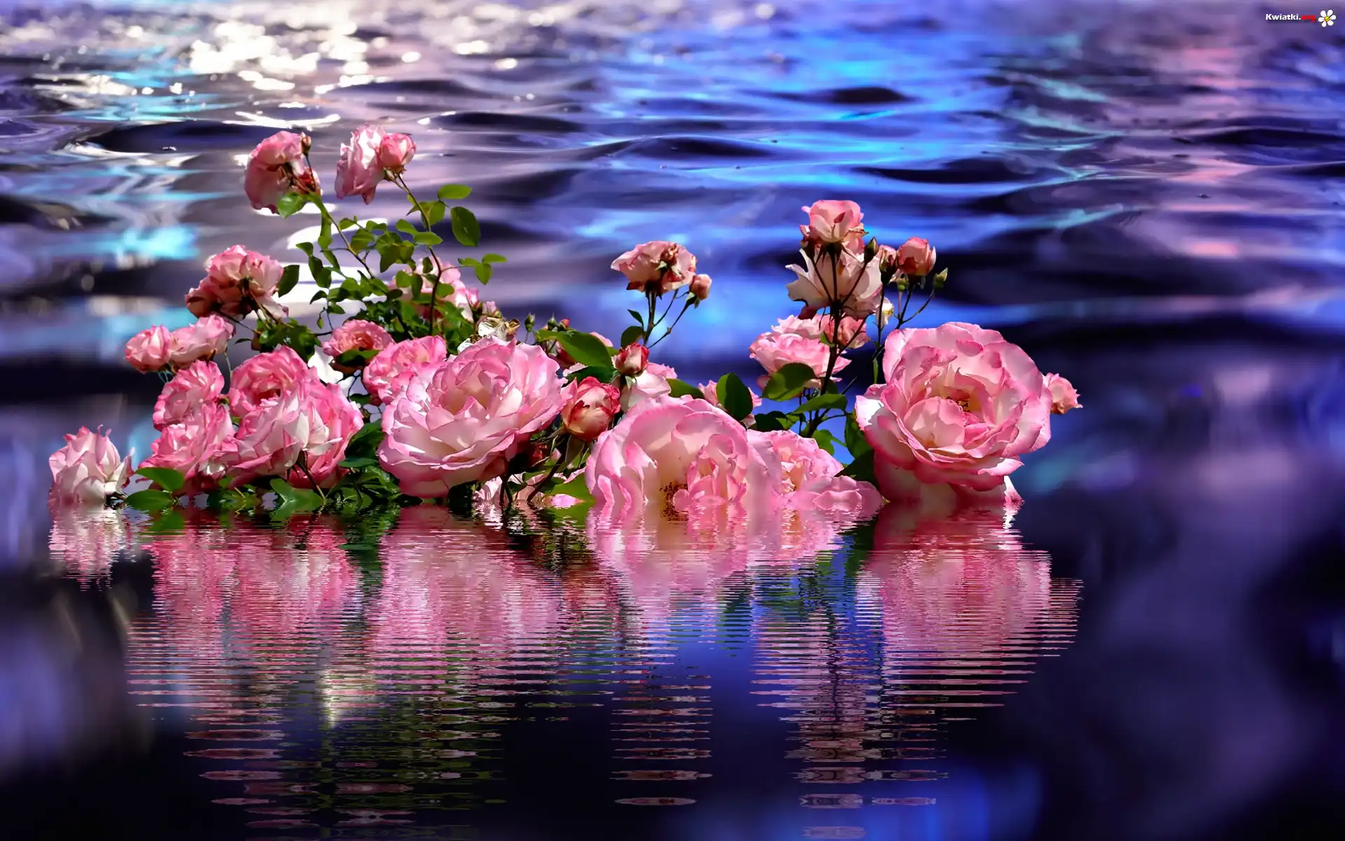 Róże, Kwiaty, Woda, Odbicie, Grafika 2D - Zdjęcia