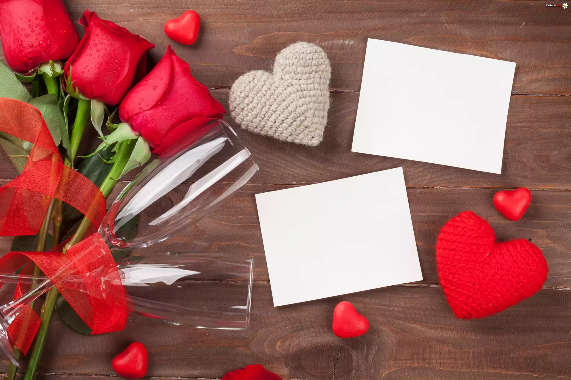 Róże, Kieliszki, Serca, Kartki, Walentynki - Zdjęcia