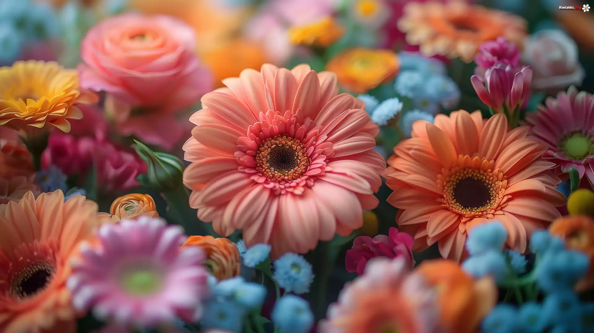 Kwiat Kolorowe, Kwiaty, Gerbery, Róże
