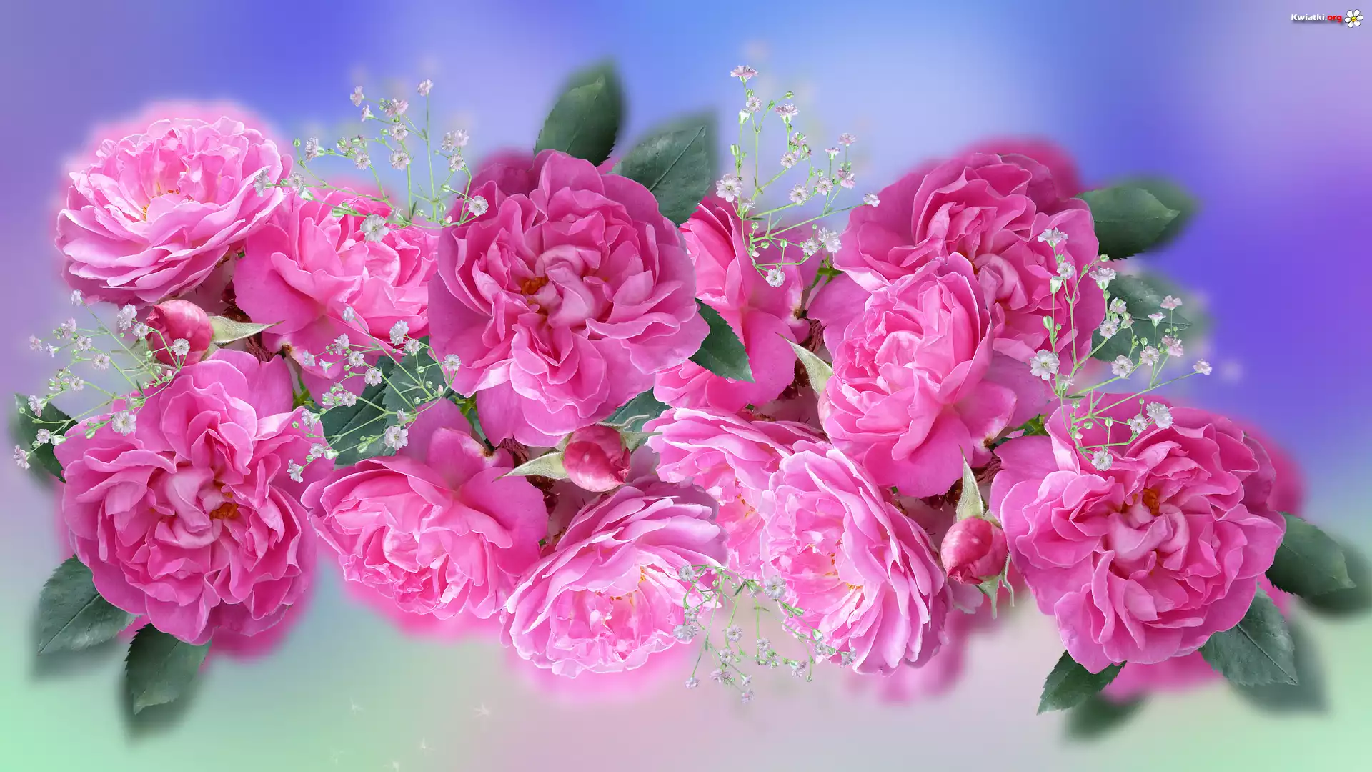 Kwiaty, Róże, Gipsówka - Zdjęcia