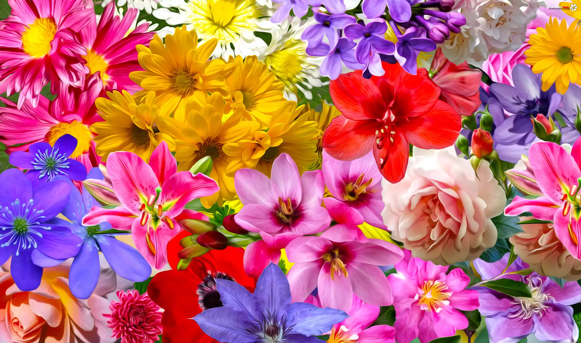Kwiaty, Róże, Lilie, Astry, Amarylis, Powojnik, Grafika - Zdjęcia