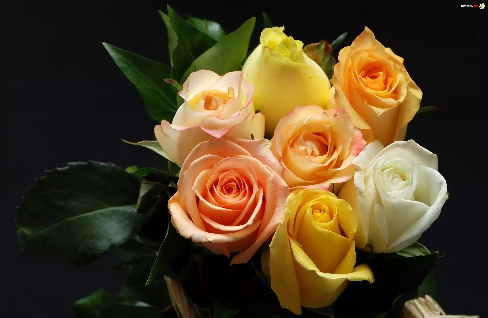 Róże, Kolorowe, Kwiaty, Liście - Zdjęcia