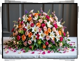 Kwiat Bukiet, Kolorowe, Kwiaty, Róże, Lilie, Płatki, Stół