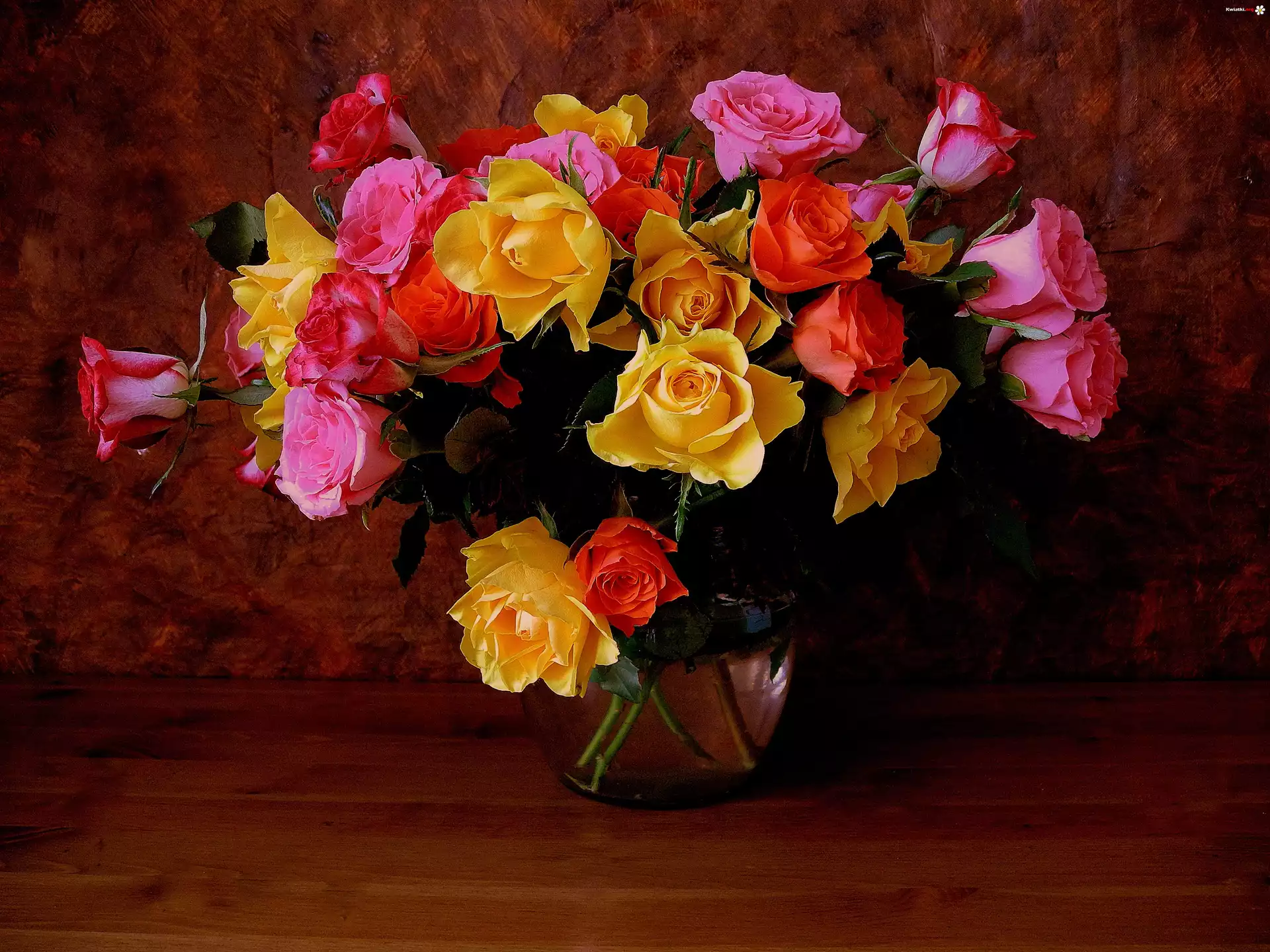 Kwiaty, Róże, Wazon - Zdjęcia