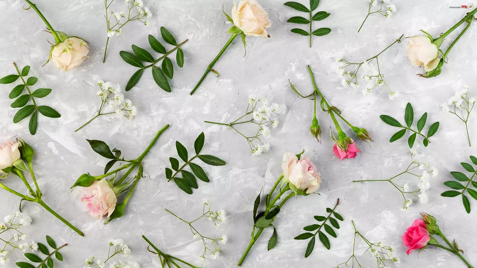 Kwiat Róże, Listki, Gipsówki, Marmurkowe, Tło