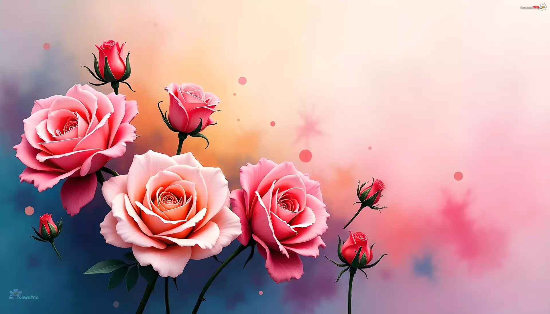 Różowe, Róże, Pąki, Kwiaty, Grafika - Zdjęcia