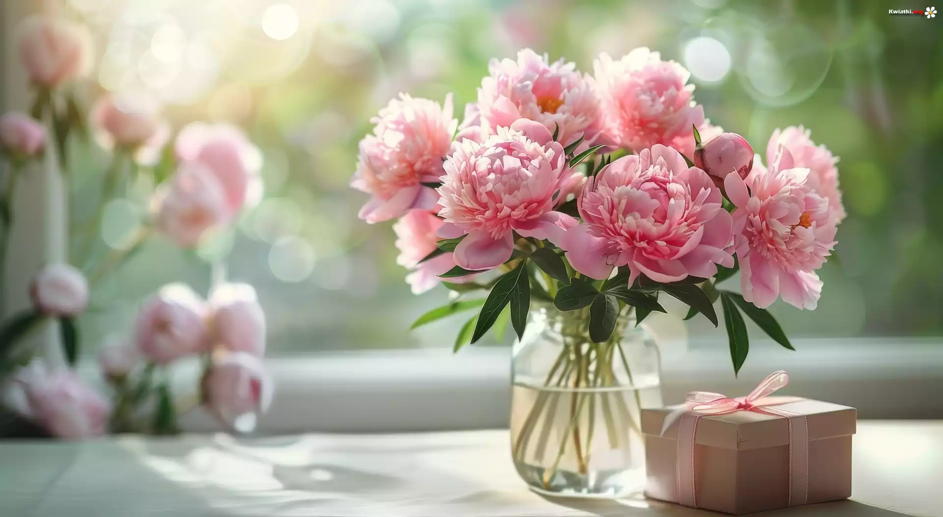 Kwiat Bukiet, Róże, Piwonie, Wazon, Prezent