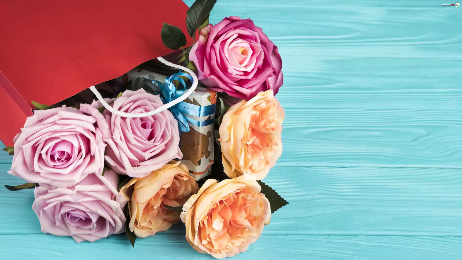 Kwiat Róże, Bukiet, Prezent, Torba