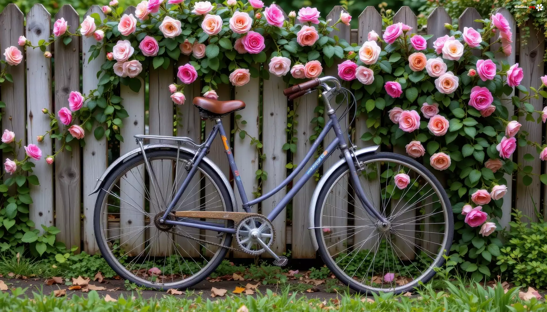 Rower, Płot, Pnące, Róże - Zdjęcia