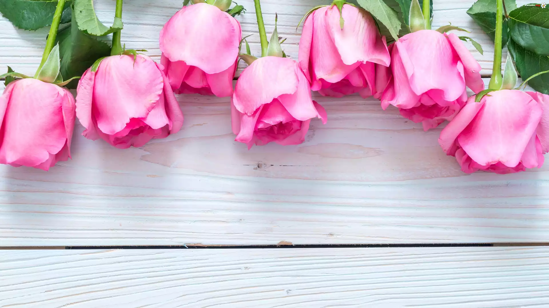 Róże, Siedem, Różowych, Róż, Deski - Zdjęcia