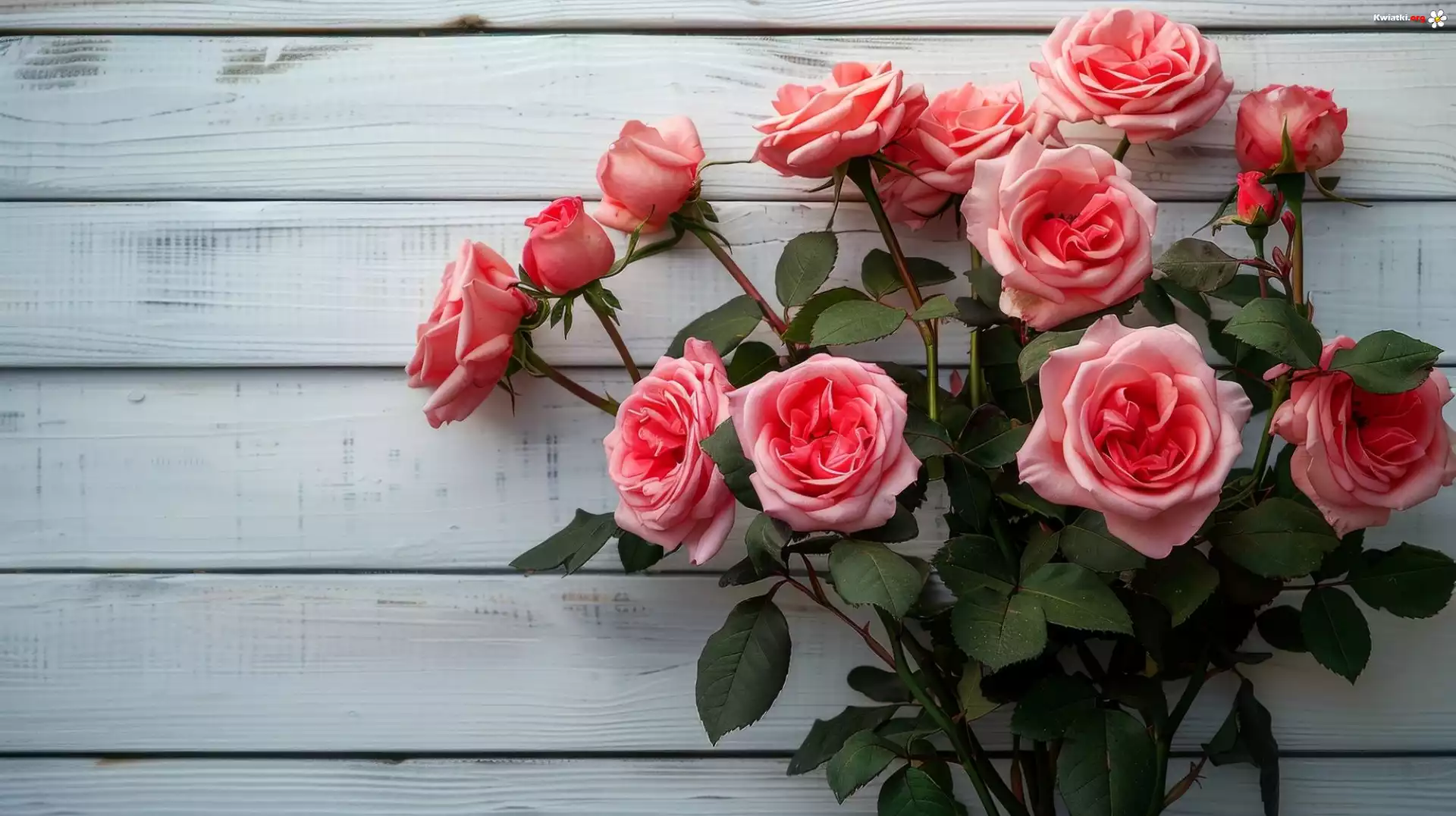 Kwiaty, Róże, Różowe, Liście, Deski - Zdjęcia