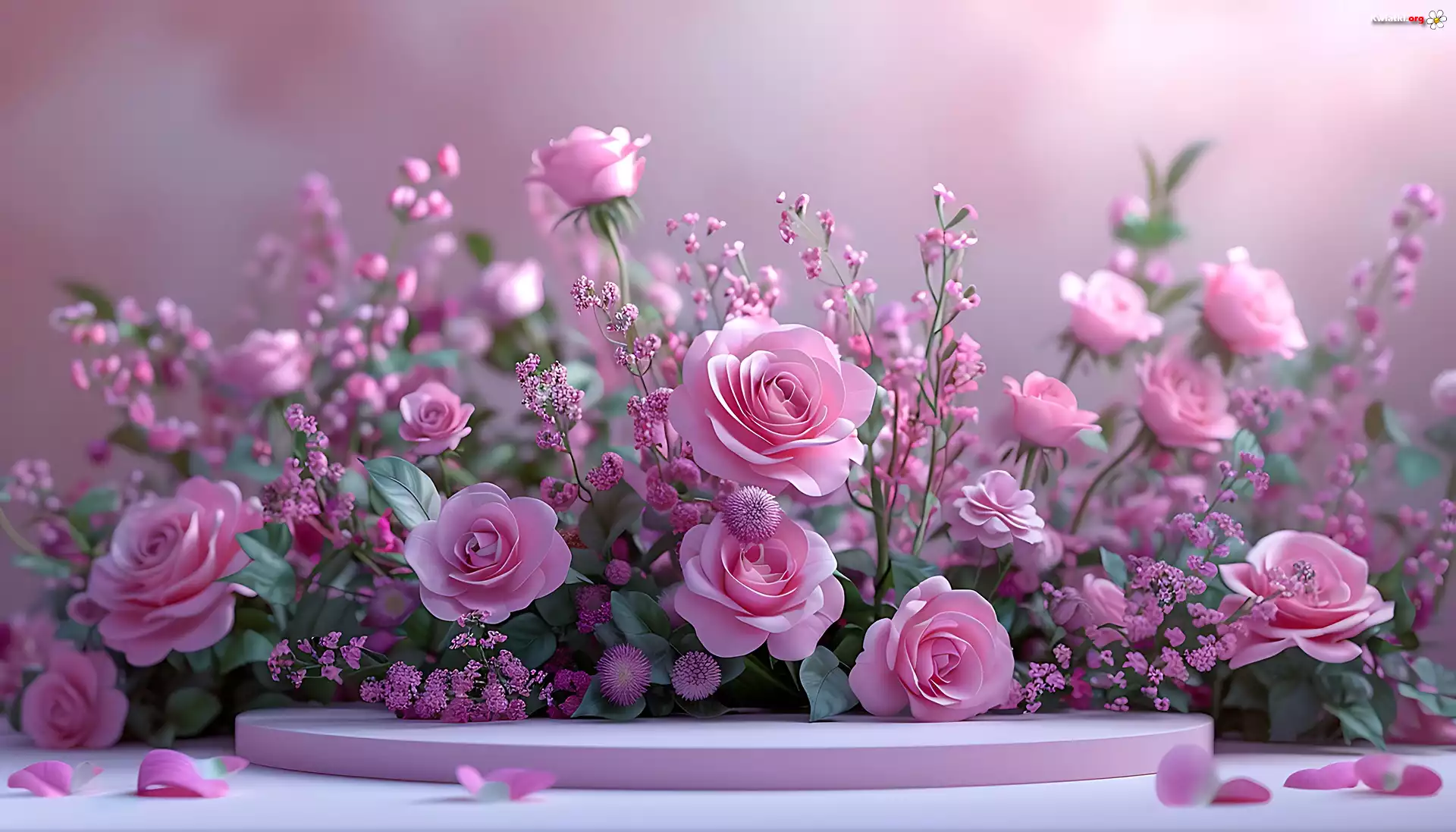 Kwiat Kwiaty, Róże, Różowe, Kompozycja, Grafika