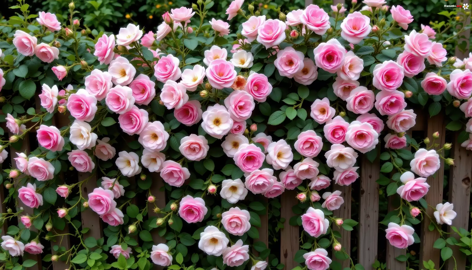 Kwiaty, Róże, Różowe, Płot, Liście - Zdjęcia