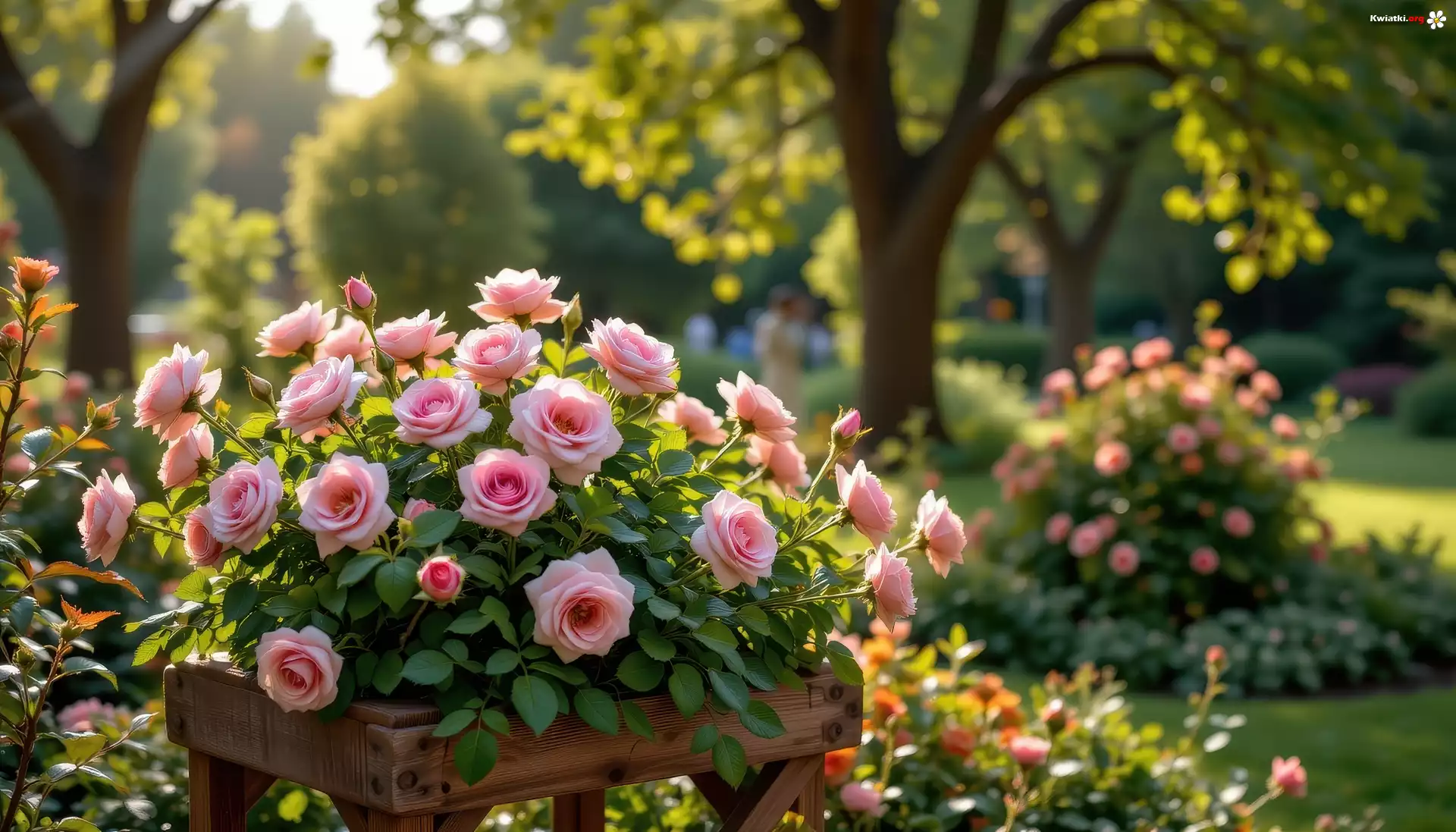 Kwiaty, Róże, Różowe, Drzewa, Ogród - Zdjęcia