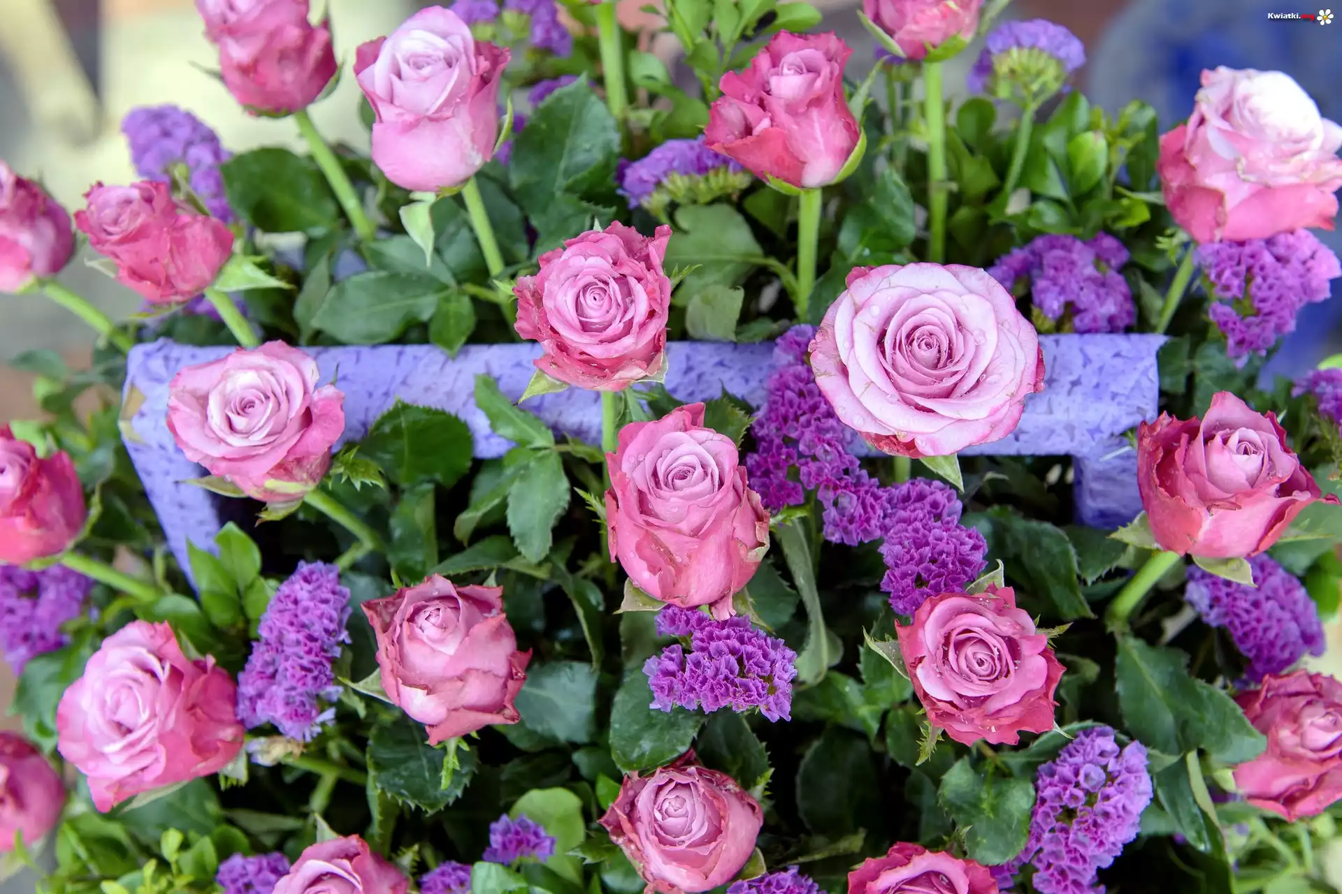 Różowe, Róże, Zatrwian - Zdjęcia