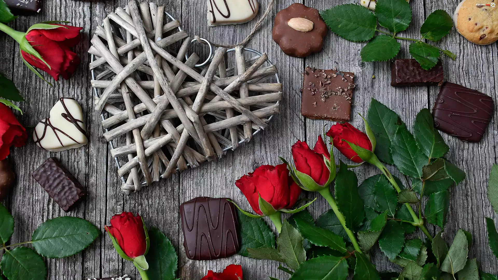 Róże, Czekoladki, Serce, Walentynki - Zdjęcia