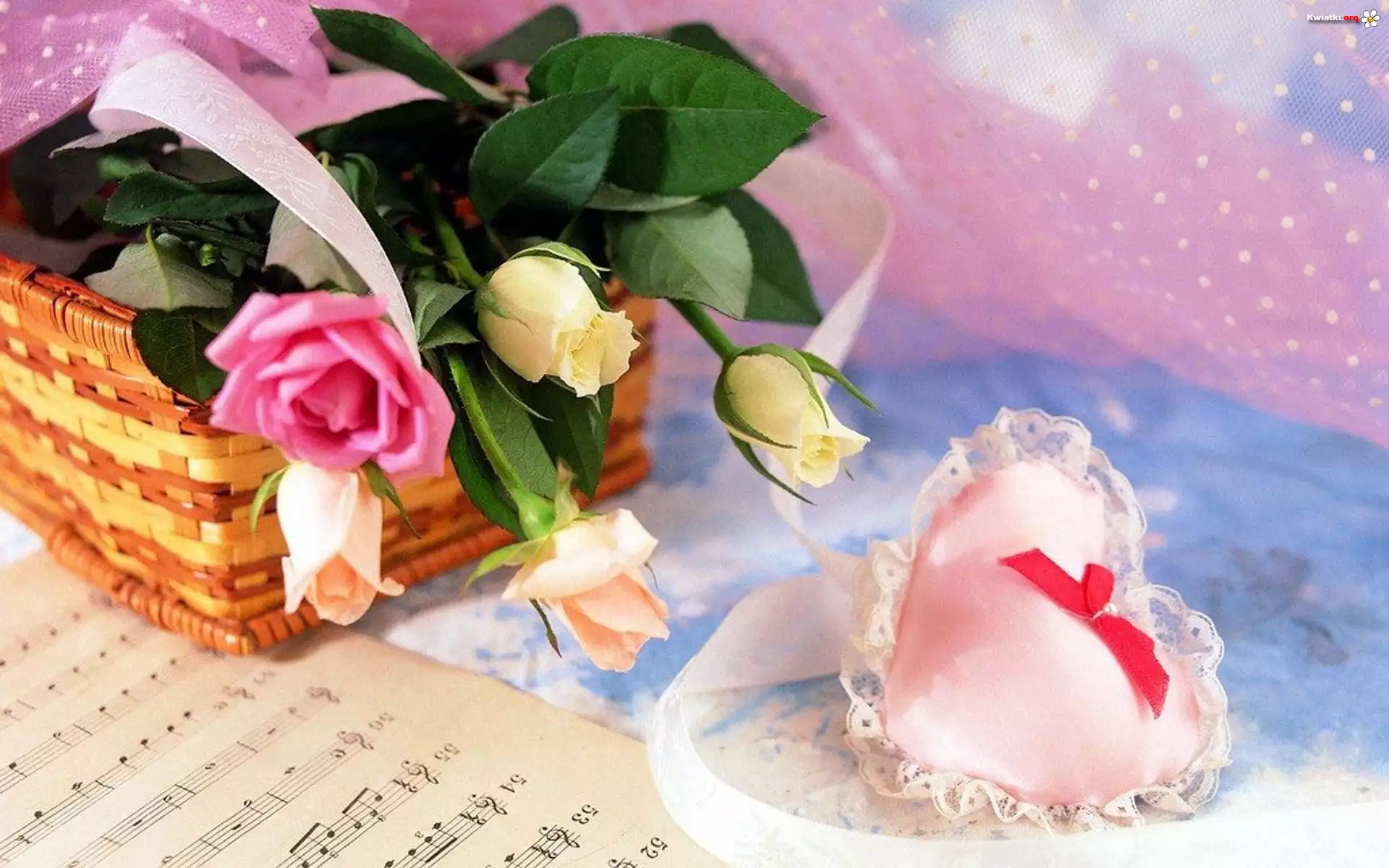 Kwiat Róże, Kolorowe, Serce, Nuty
