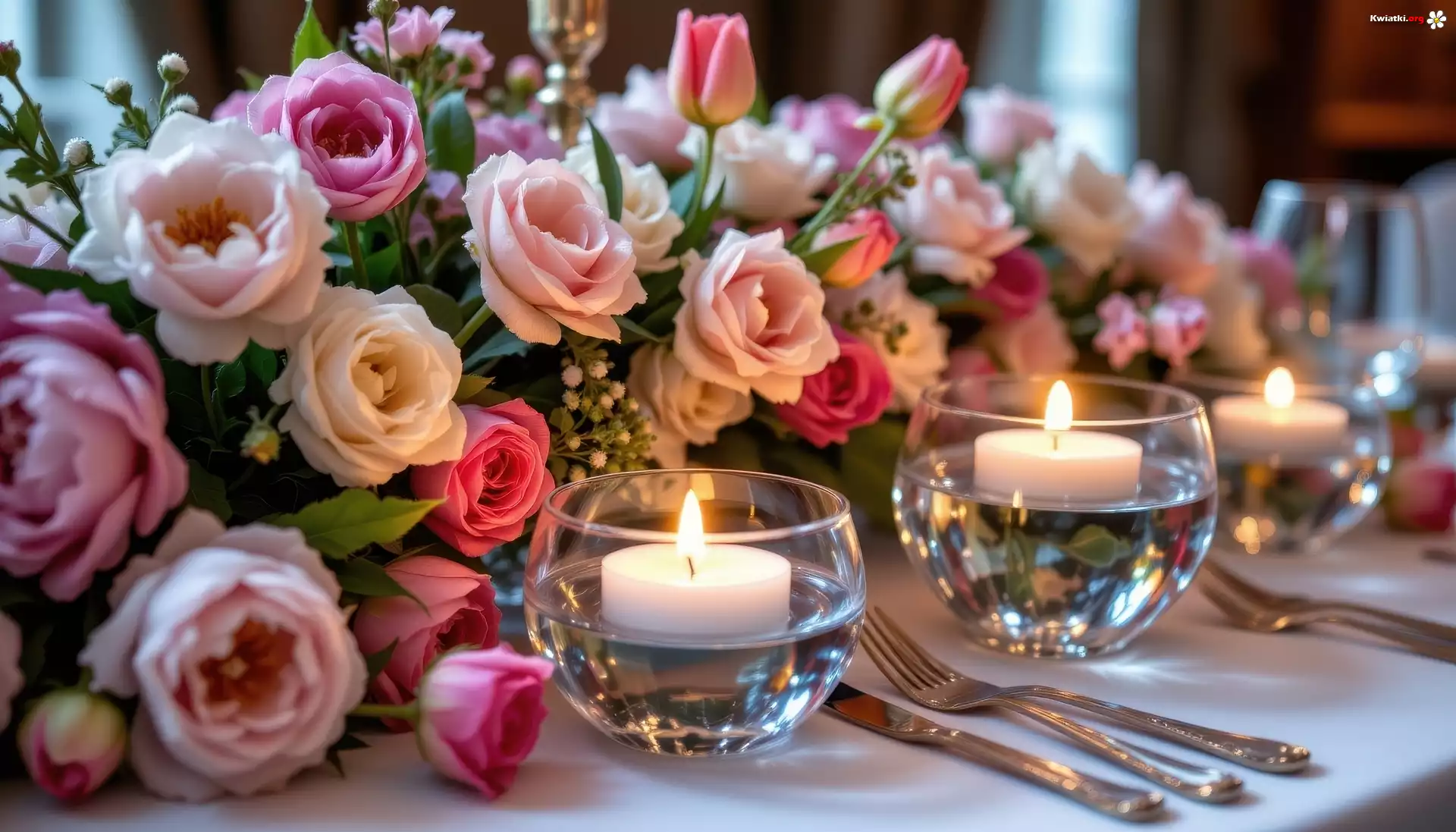 Kwiaty, Róże, Świece, Sztućce, Stół - Zdjęcia