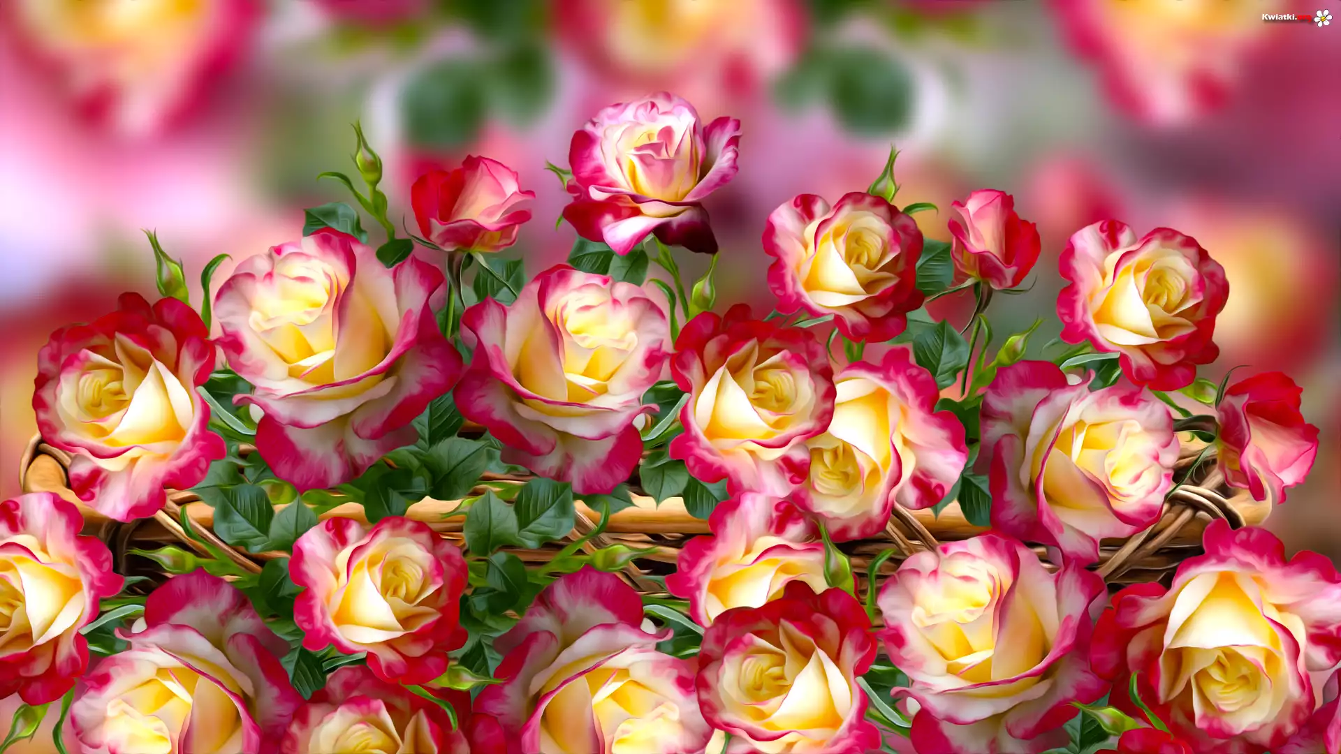 Róże, Rozmyte tło, Grafika - Zdjęcia