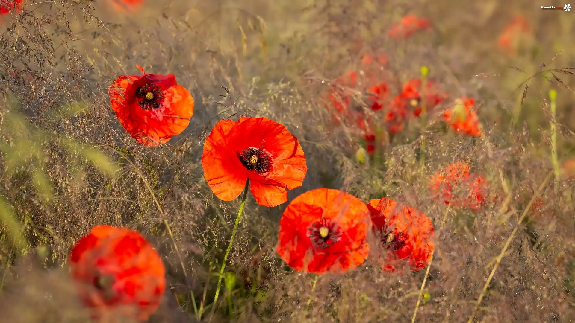 Rozkwinięte, Czerwone, Maki, Trawa - Zdjęcia